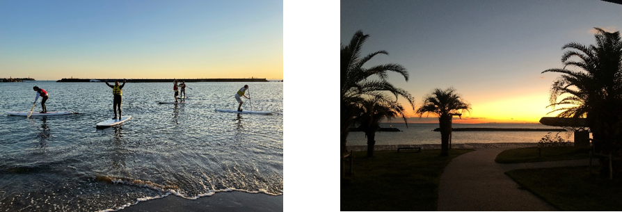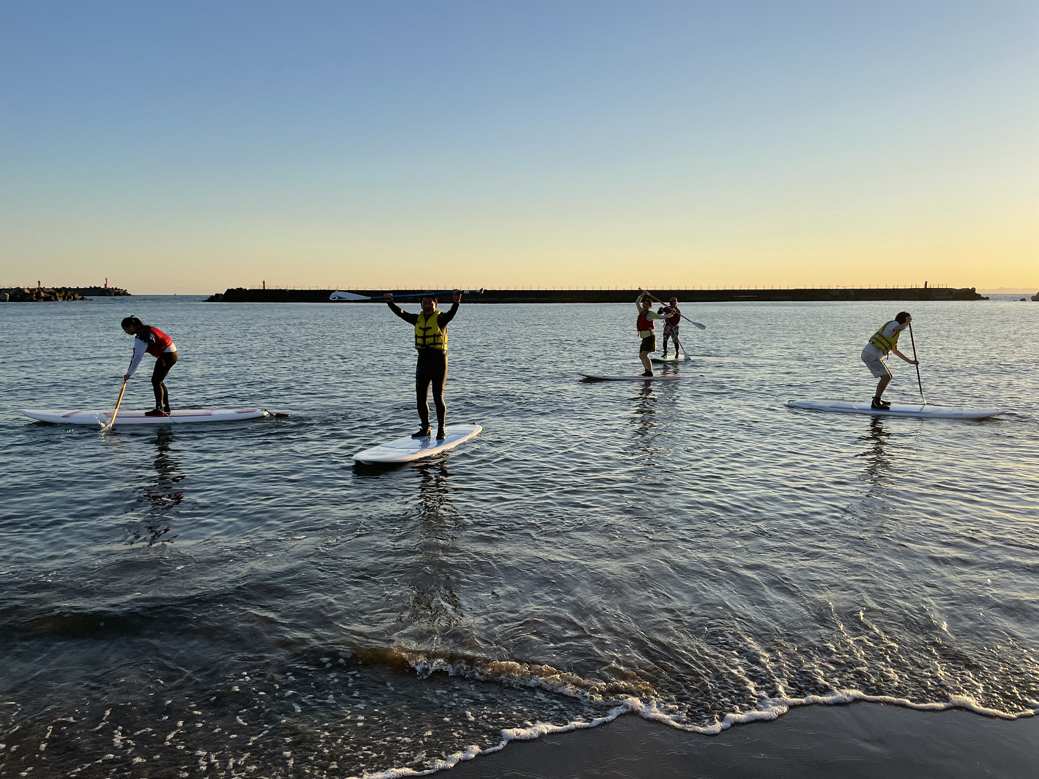 ・終業後:夕暮れの土佐湾でマリンスポーツ「SUP(スタンドアップパドルボード)」を体験。