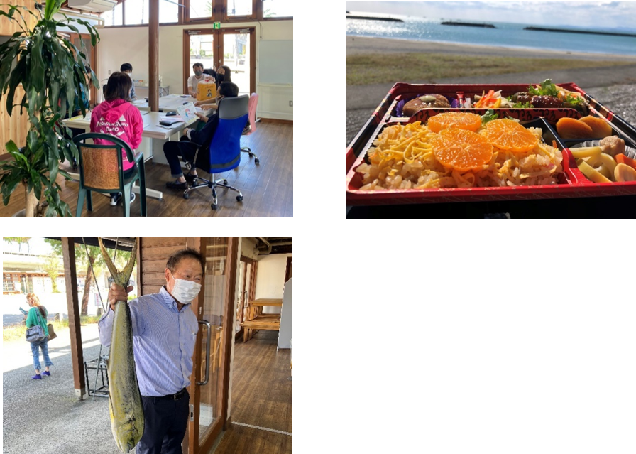 ・会議・執務:打合せを兼ねて、昼食。地元食材をふんだんに使用した特製弁当「ものべん」を堪能後、ワークプレイスにて執務開始。