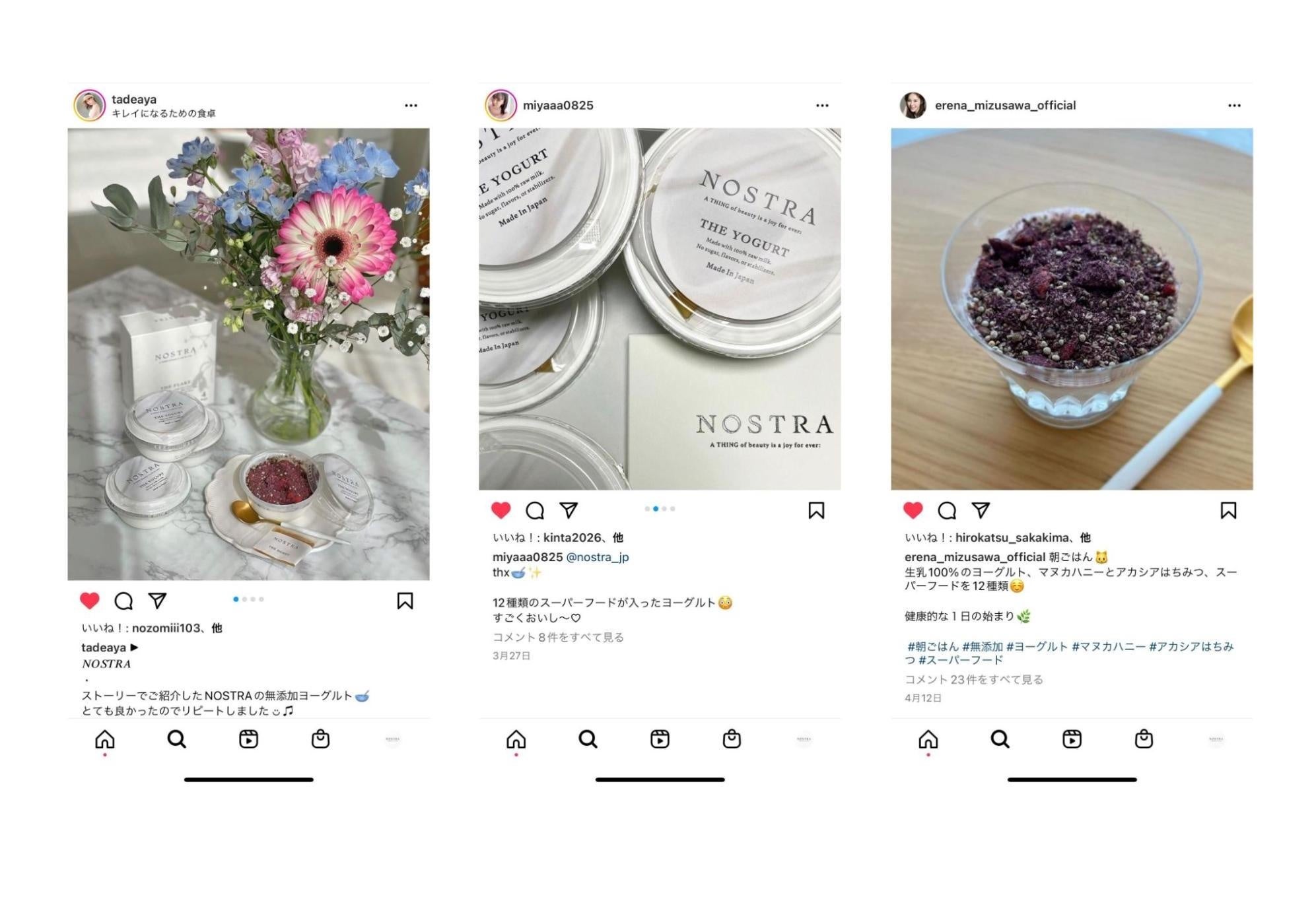 日頃の食生活を意識している方や、ダイエットや美容のために健康食を試し続けてきた方などを中心に、NOSTRAにハマる方が続出。これまでにInstagramのタグ付け投稿550件、タグ付けして投稿した方の累計リーチフォロワー数は約2,000万人以上*と、美容や健康に意識の高い方々からNOSTRAの魅力をシェアしていただいております。