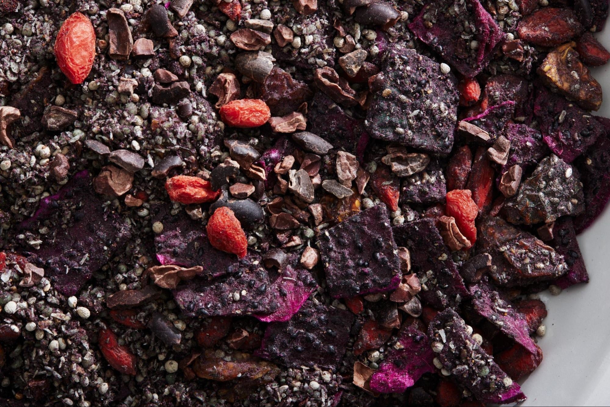 NOSTRAのメインとなるのは、ひとつひとつが世界各地で"奇跡"と称される、12種類のスーパーフードのみをブレンドした“THE FLAKE”。マカ、スピルリナ、アサイー、ヘンプシード、チアシード、マキベリー、クコの実、ココナッツ、カカオニブ、えごま、ピタヤ、ゴールデンベリーそれぞれを適切に調理を加え、贅沢に使用しています。