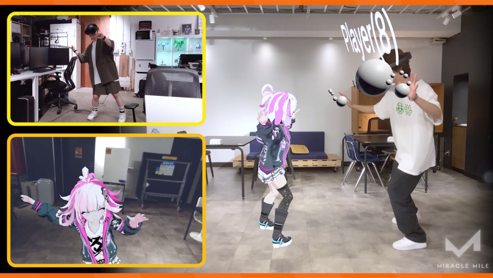 パフォーマー(演者)はモーションキャプチャデバイスを使ってインターネット経由で接続する為、近くにいる必要はありません。体験者はビデオパススルーで周囲が見えるヘッドマウントディスプレイを装着することでバーチャルキャラクターと現実空間内で実際に会っているような体験ができます。