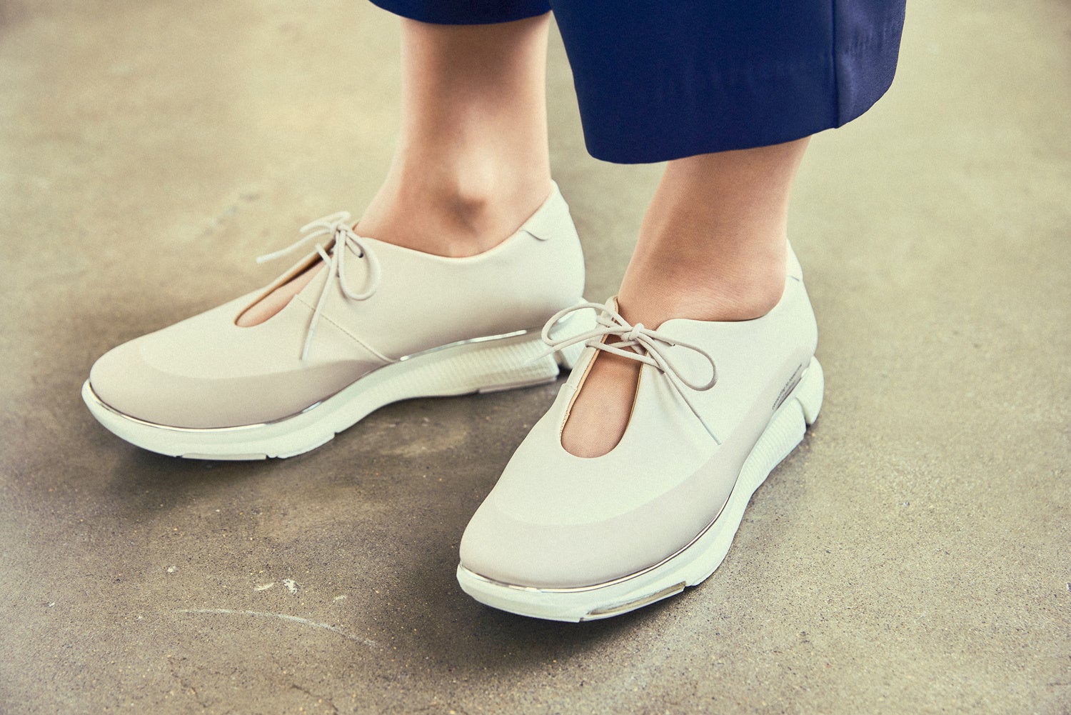 本商品は、昨年春に発売し好評をいただいたéclat limited editionの第2弾です。今回は、「PEDALA」シリーズで人気の高い「ペダラ ソフトラギッド」と、足にやさしいだけでなく、リサイクル素材を採用した「ペダラ ライドウォークコネクト」を用意しました。どちらも「éclat」らしい、足元を上品に見せる大人の「ニュアンスグレー」を配したモデルです。やわらかい印象のベージュと洗練されたライトグレーの中間色のようなカラーで、さまざまな服装に取り入れやすく、春らしい季節感のあるコーディネートに仕上げてくれます。