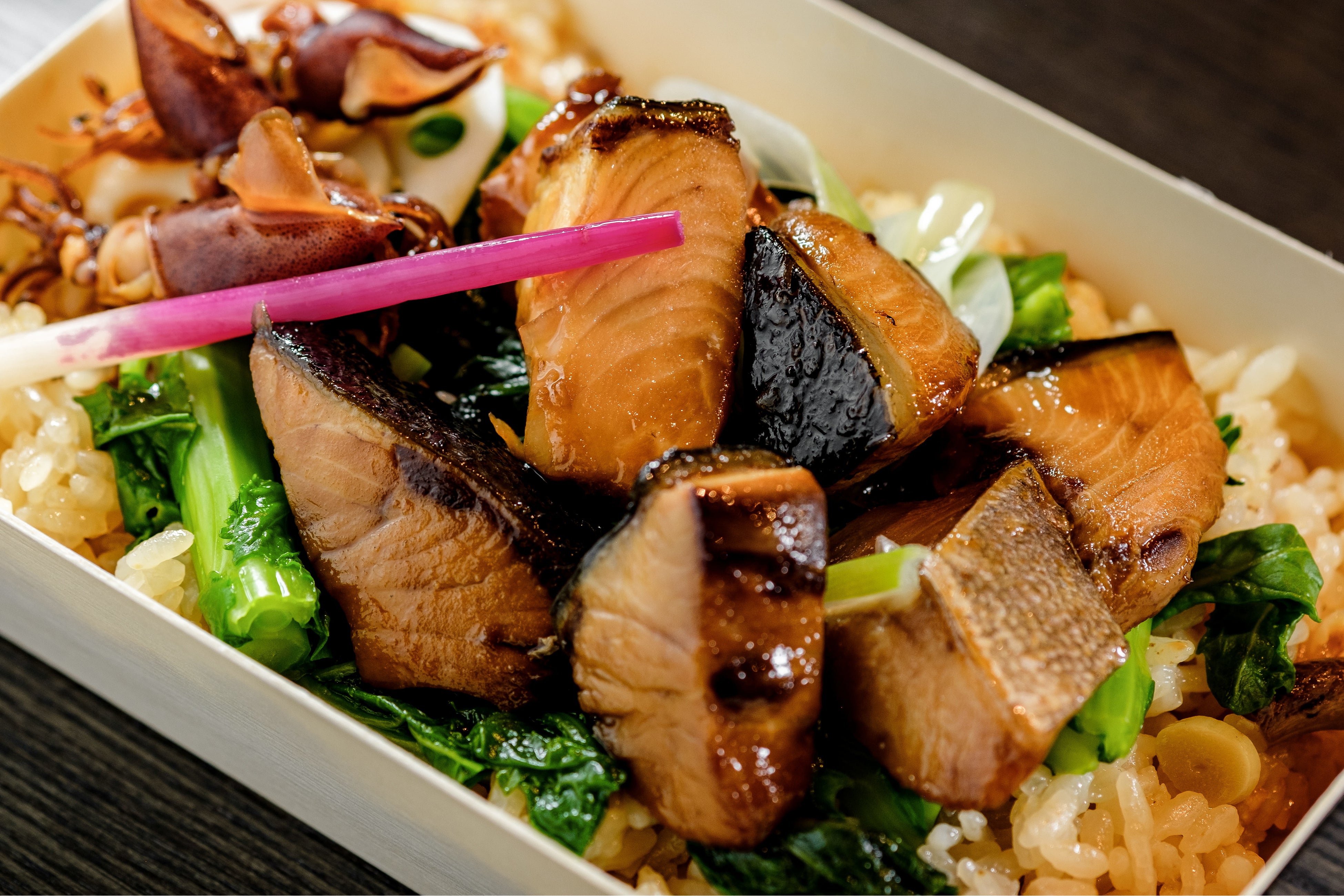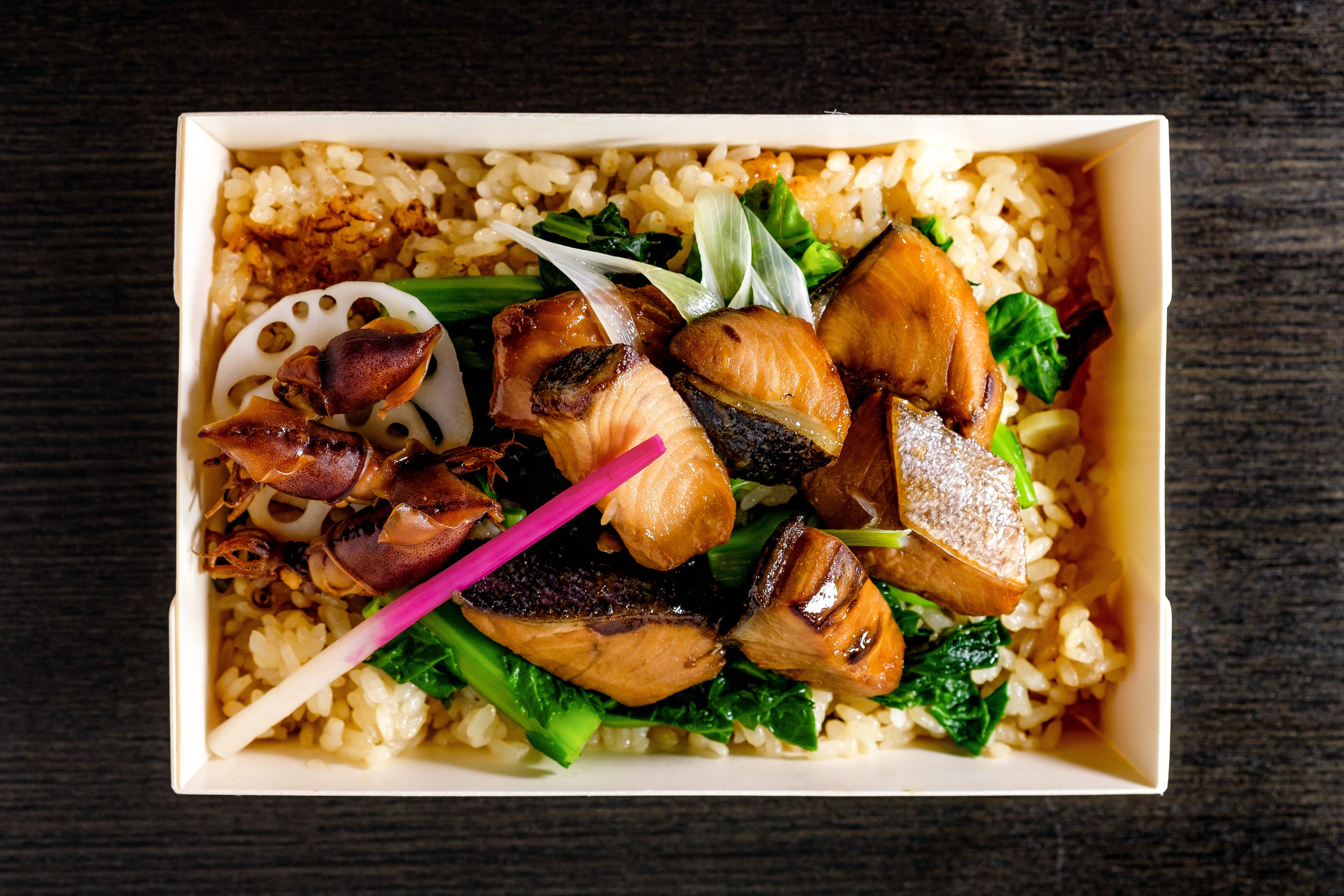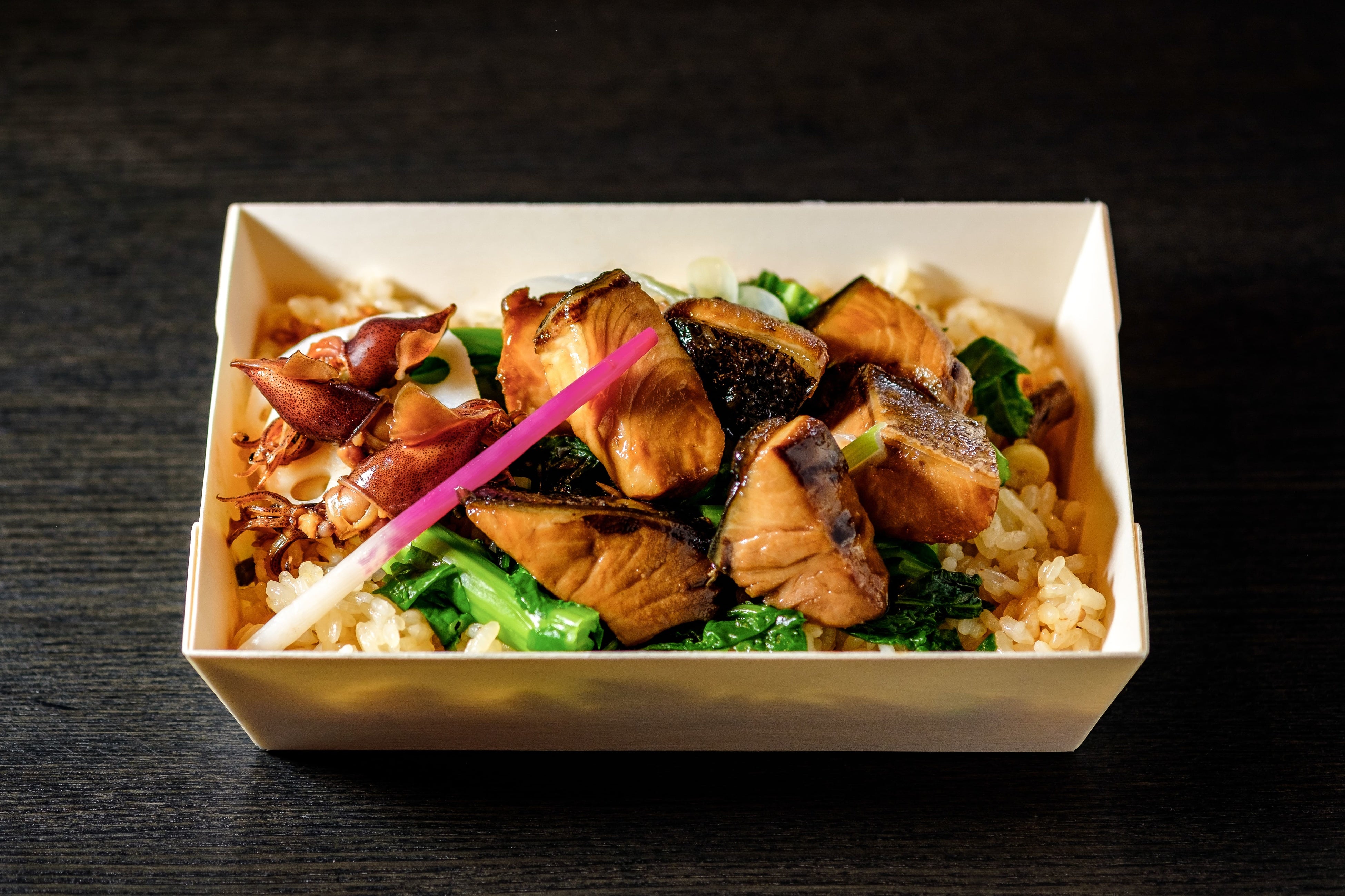 「ぶりのすき焼きとホタルイカ弁当」は、フランス、パリ・セーヌ川のサン・ルイ島の星付きレストラン「le sergent recruteur」で副料理長を経験した山下貴民シェフがぶりの美味しさを「お弁当」でも最大限味わえるレシピを考案。誰もが親しみを持てる味付けに、溶け出したぶりの脂が煮汁やねぎにじっくりしみこむことで、その旨味を全体で味わうことができるすき焼きに仕立てました。また、富山といえば有名なのが「ホタルイカ」。新鮮だからこそできる、プリッとした外側の歯応えと、トロリとした肝の美味しさを残し、おかずとして添えています。