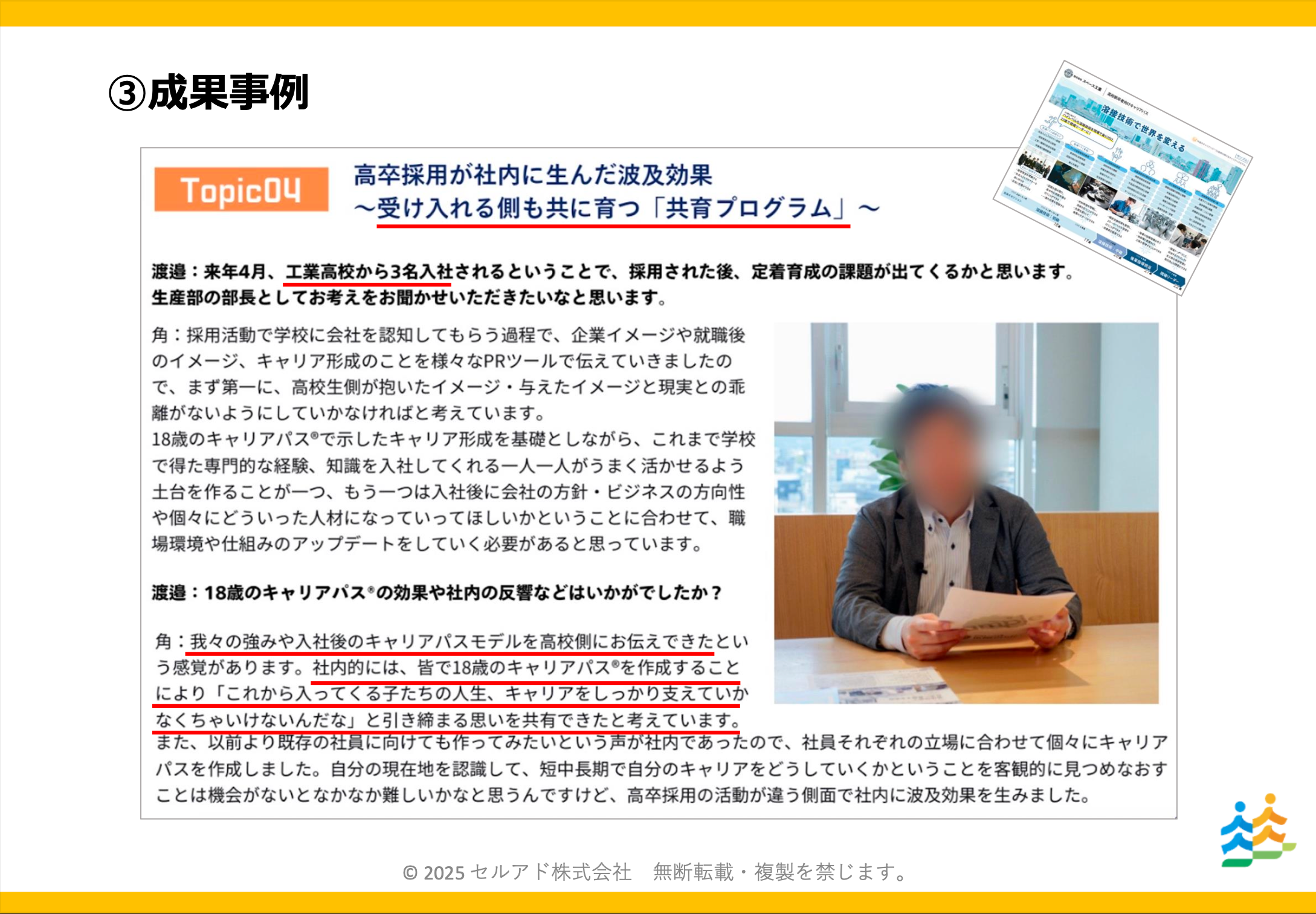 事業内容:「高校就職指導」×「企業高卒採用広報」を掛け合わせた高卒採用広報・育成支援