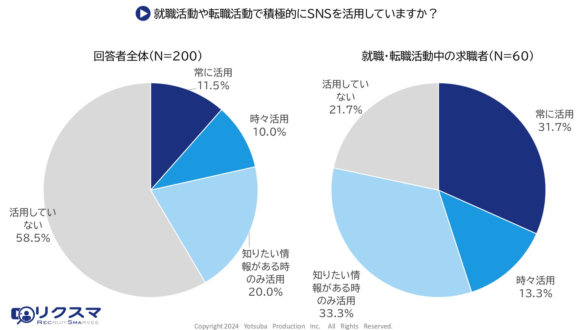 中小企業/BtoB企業の採用向けSNS運用サービス「リクスマ(https://smarvee.com/rec-sma/)」を運営する株式会社よつば制作所(本社:東京都豊島区、代表取締役:関 晴仁)は、都内に住む20代のZ世代200人に「就職活動と転職活動でのSNSの活用状況」に関する調査を実施しました。