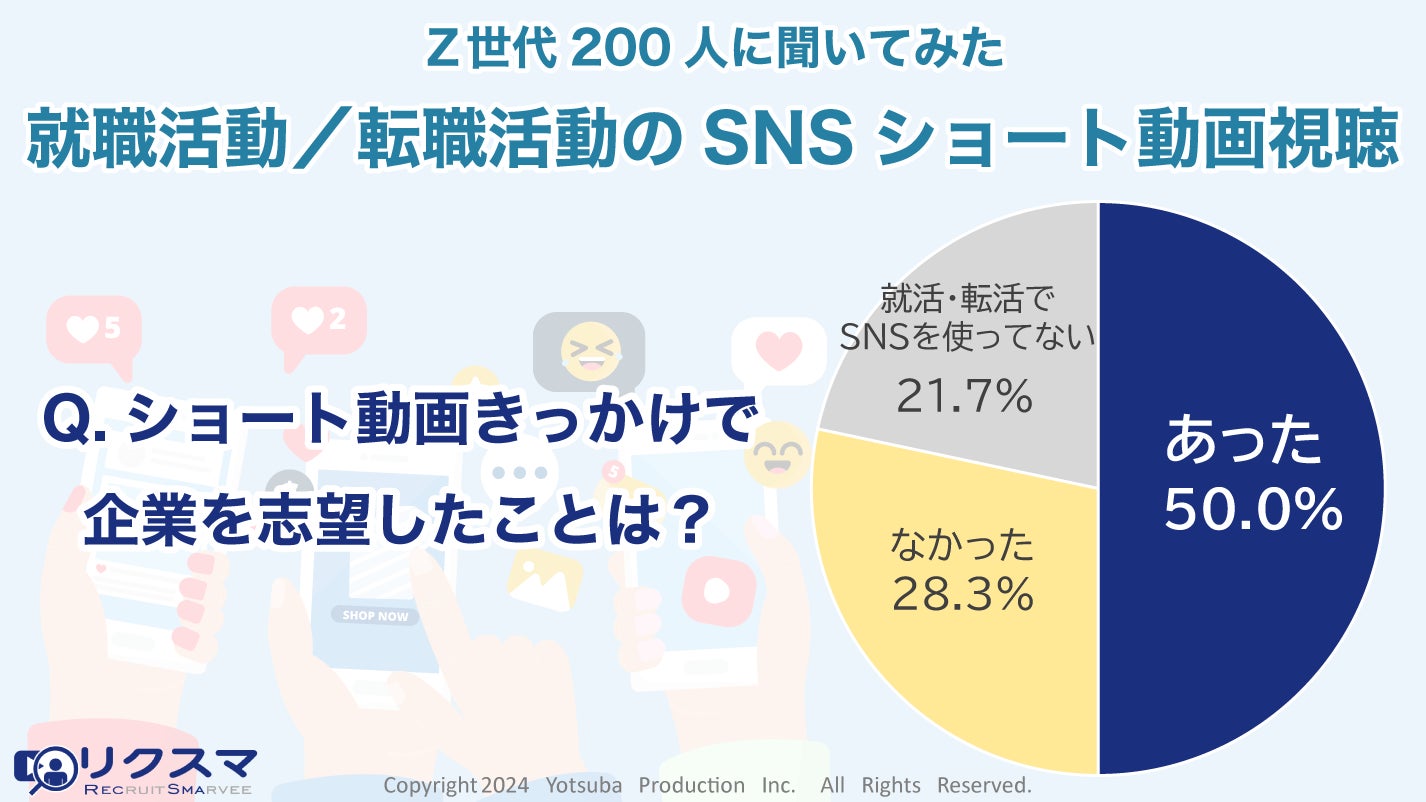 就職・転職活動中のZ世代の5割が、SNSの「おすすめ」や「ショート動画」をきっかけに志望した企業が「あった」と回答。Z世代の就職活動・転職活動におけるSNSの活用状況に関する調査結果