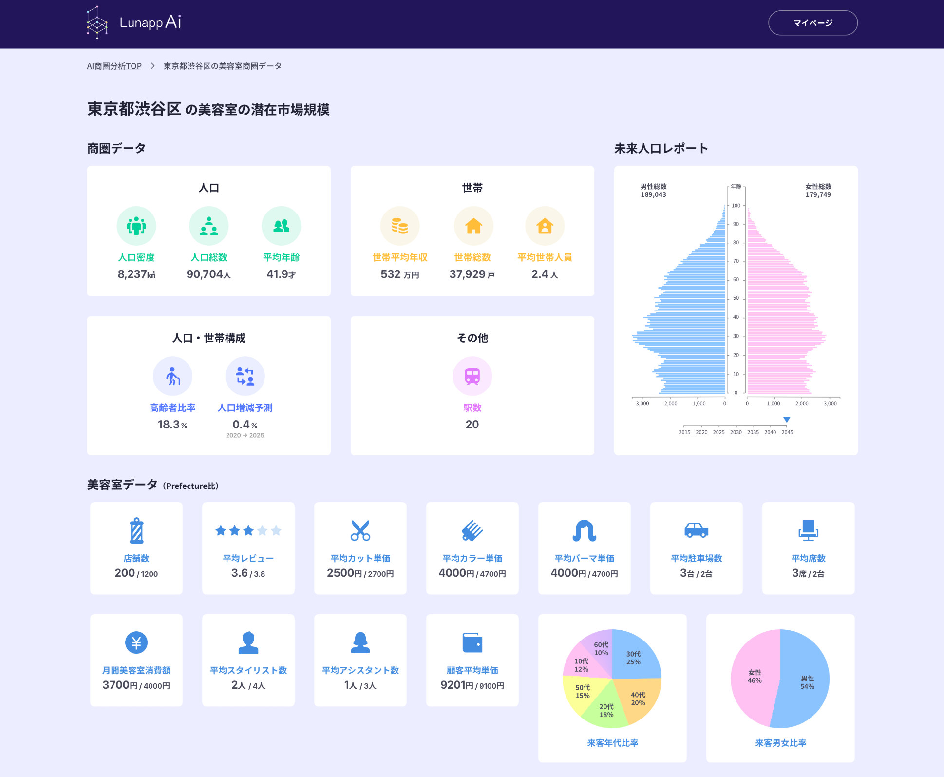 美容室の新規出店エリアを決めるためのAI商圏分析システム「LunappAI」のベータ版をリリースすることとなりました。
