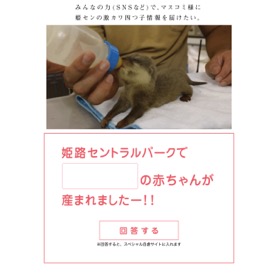 “みんなの力(SNS)でマスコミ様に姫センの激かわカワウソ情報を届けたい。”と記載しているにも関わらず、 『姫路セントラルパークで●の赤ちゃんが生まれましたー!!』という問いに回答して頂きます。