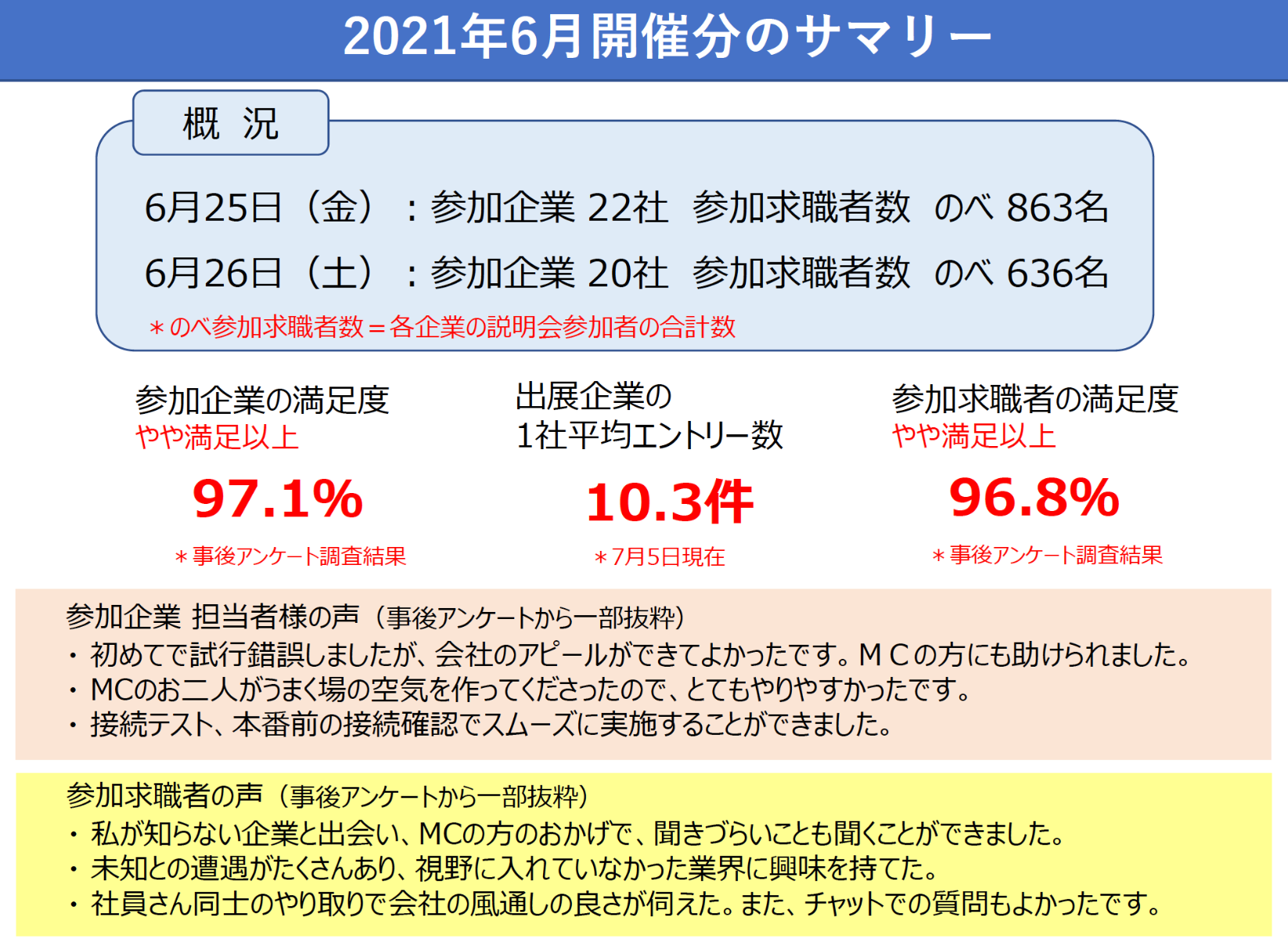 これまでに約180社の企業様、そしてのべ約6700名の求職者様にご参加いただきました。