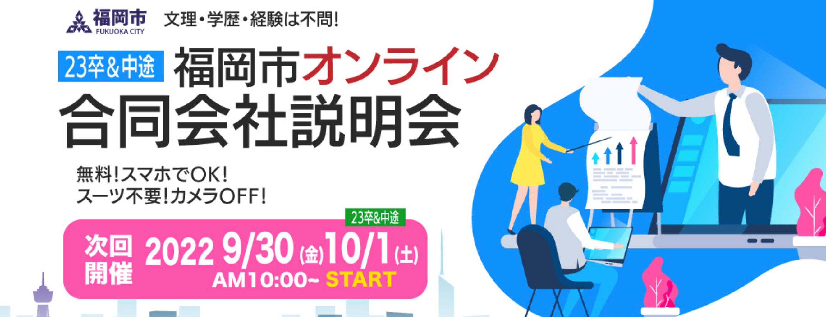 福岡の企業約180社&求職者動員数のべ約6700名の実績を持つ福岡市オンライン合同会社説明会が23年度卒&中途向けにイベントを開催!