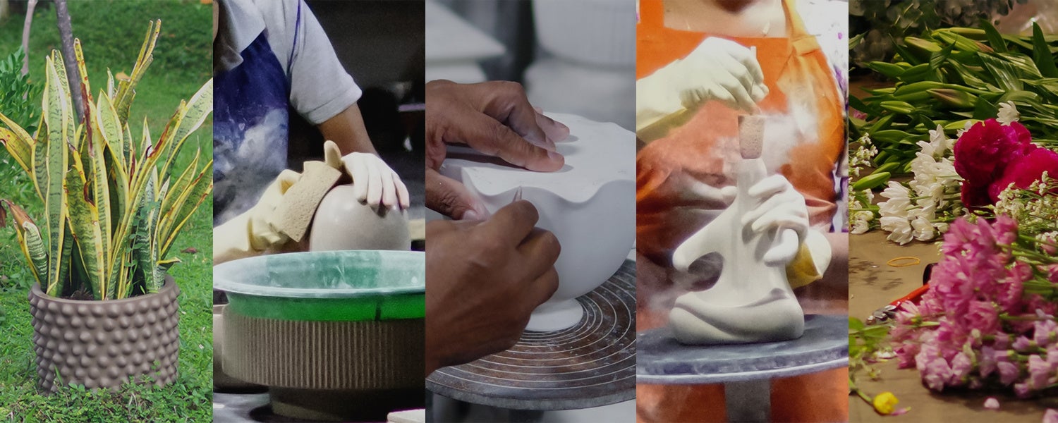 第一弾は南アジア最大の装飾用セラミックメーカーの花瓶、植木鉢など。お得なセットも限定販売。