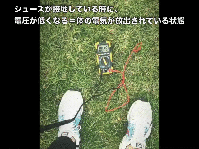 多くのスポーツシューズはラバーソールがあることにより、体内の電気が地表に流れるのを妨げられてしまっています。