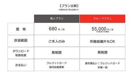 個人でご利用の場合は月額680円、グループ内でアカウントを共有してご利用の場合は年間55,000円のお求めやすい価格になっており、画像の制作会社だからこそ可能となりました。