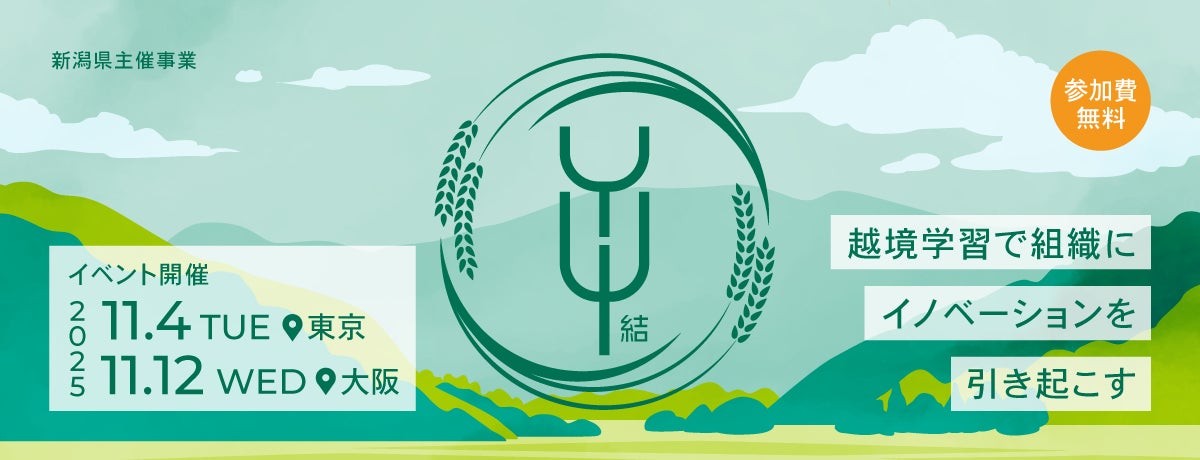 「働くを楽しくする」サービスを提供する株式会社インソース(本社:東京都荒川区、代表取締役執行役員社長:舟橋 孝之)のグループ会社、教育とデザインの力で幅広い社会課題を解決するミテモ株式会社(本社:東京都港区、代表取締役:澤田哲也)は、新潟県からの委託を受け、企業の課題に対し農泊地域での越境学習プログラムについて共創するイベント「YUI-結(ゆい)~越境学習で組織にイノベーションを引き起こす」を、2025年11月4日(火)東京・11月12日(水)大阪で開催します。