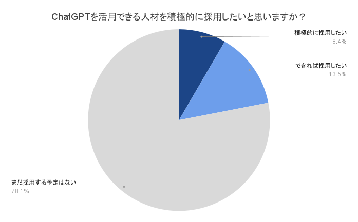・ChatGPTを活用できる人材を積極的に採用したいと回答したのは約2割。