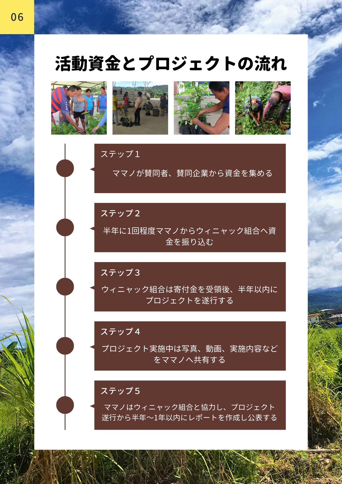 ・ママノはウィニャック組合と協力し、プロジェクト遂行から半年〜1年以内にレポートを作成し公表する
