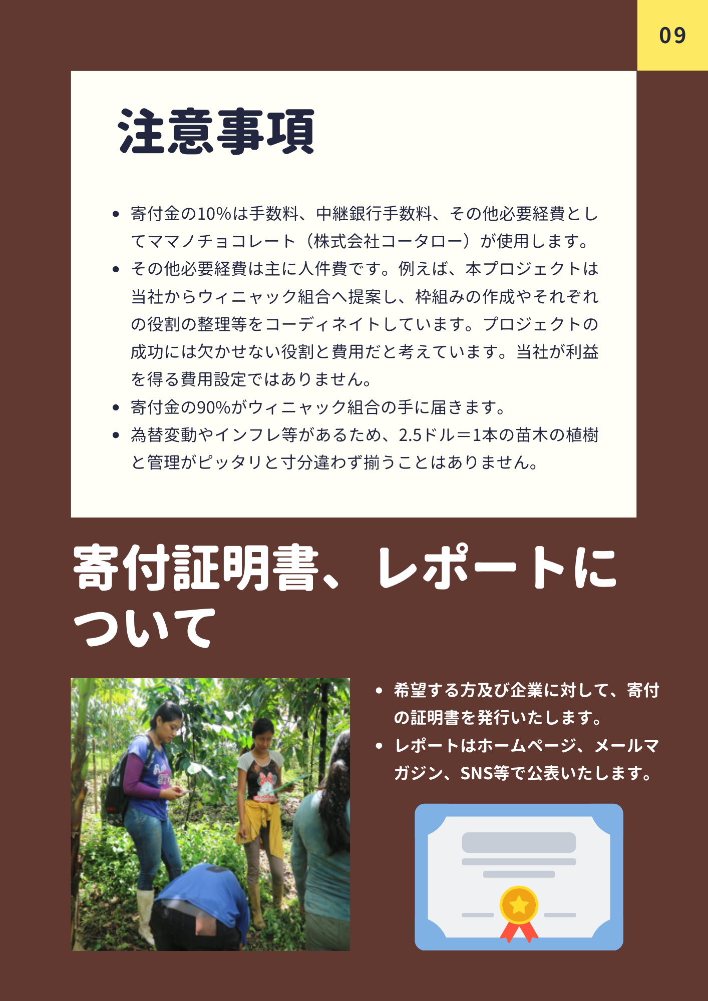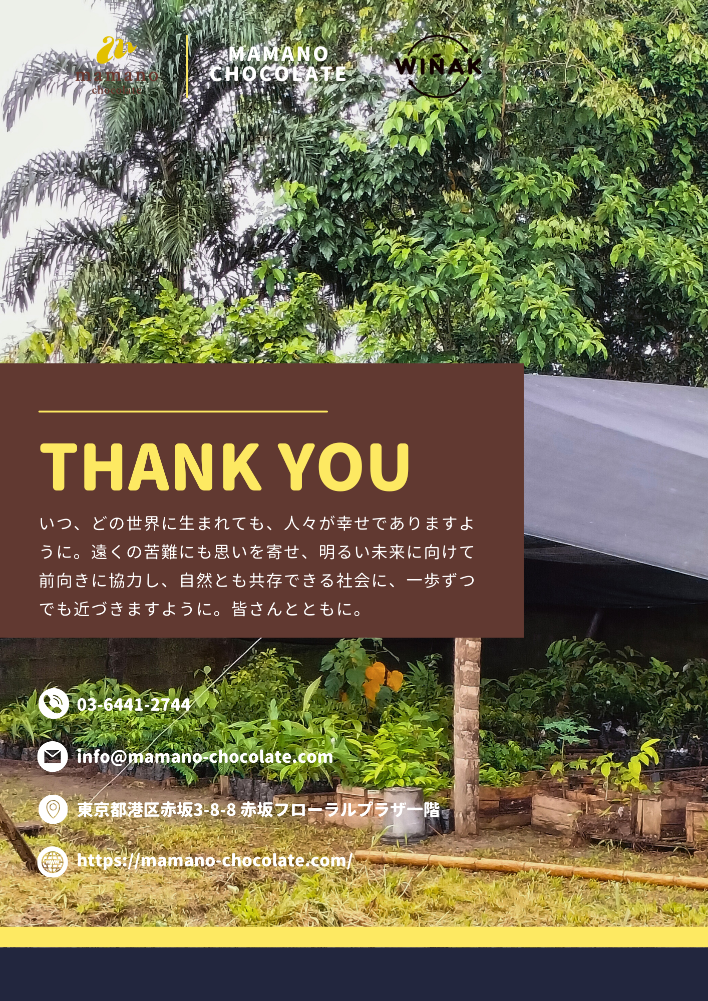 ママノチョコレートのオンラインショップでは、1本〜1,000本(それ以上も可)単位でのサポートを支援購入できるようにしております。個人、法人からのサポートを募り、1年に1回レポートを発行して支援者に細かな情報共有を行います。また、希望される方には感謝状をお送りいたします。