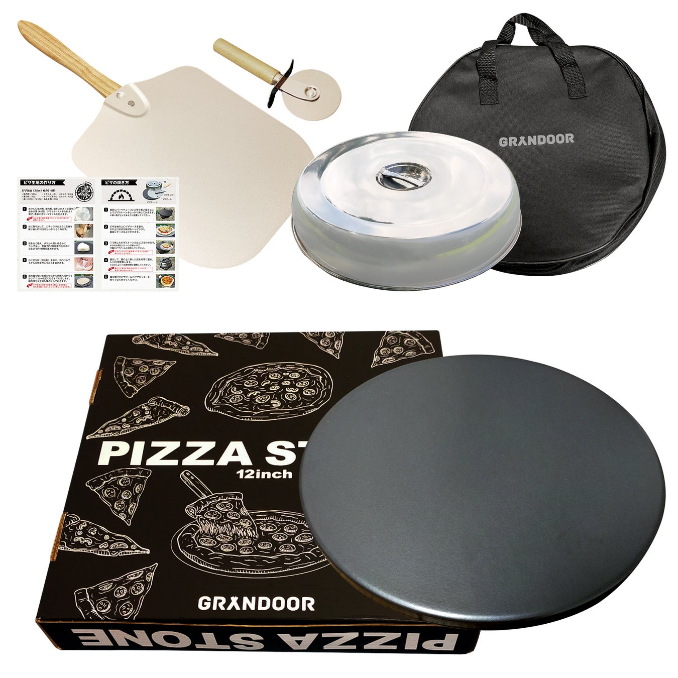 漆黒のピザストーンとピザ作りに必要なセット(ピザピール、ピザカッター、蓋、バッグ、レシピ)