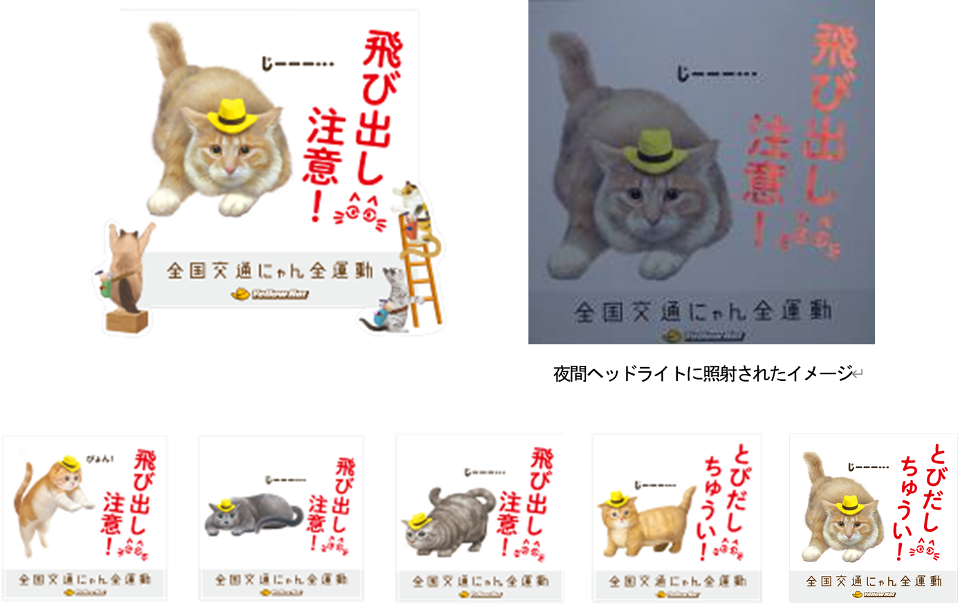 ・視界の悪い夜にも効果発揮!“飛び出し注意”の文字がクルマのヘッドライトに反応して光ることで、ドライバーに直接的に猫の交通安全を注意喚起。