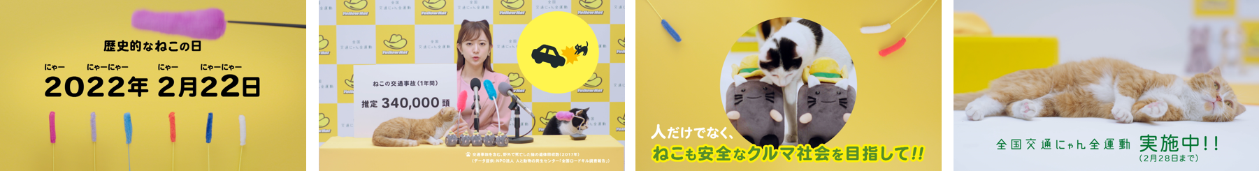 ニャーが並ぶ2022年2月22日の歴史的な「猫の日」に、猫と一緒に楽しめる「交通にゃん全発表会」動画(240秒)を放映!