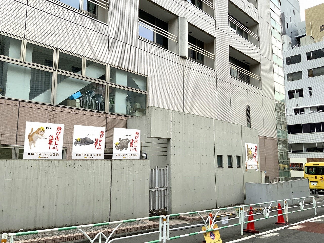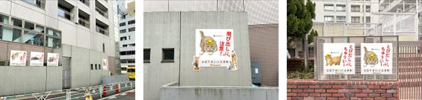 開発した“猫飛び出しサイン“の最初の設置場所として、猫の日にちなみ、名前の由来が「猫の額のように狭い通りだから」「猫が多いから」などとされる渋谷の“キャットストリート“に位置する渋谷教育学園渋谷中学高等学校にご賛同頂き、車通りのある学校周辺のフェンスなどに2022年2月17日より設置することとなりました。※設置期間は2022年2月28日までとなります。