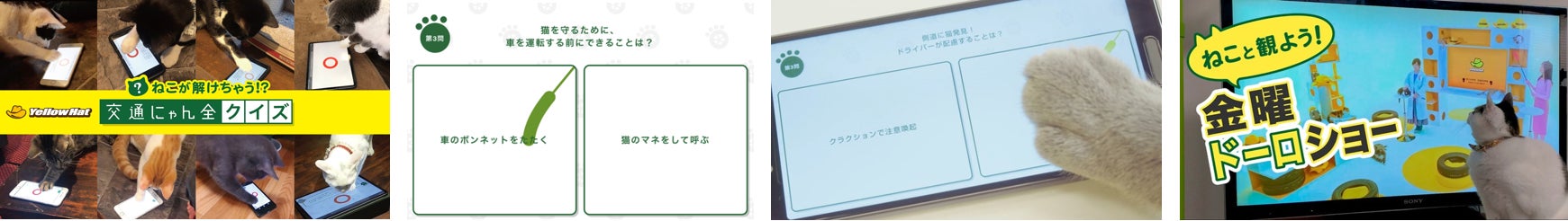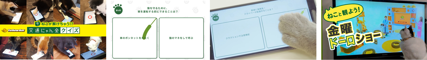 猫が肉球タッチで回答できる猫参加型の交通安全クイズを開発。さらに、テレビ地上波では恐らく初となる猫参加型の交通にゃん全番組「金曜ドーロショー」も放映。