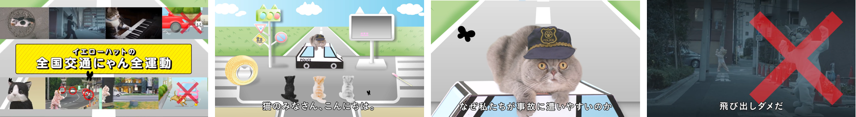 猫が交通安全を学べる動画を制作・公開。映像や音楽を駆使し、猫が興味を持ってもらえるような動画となっています。