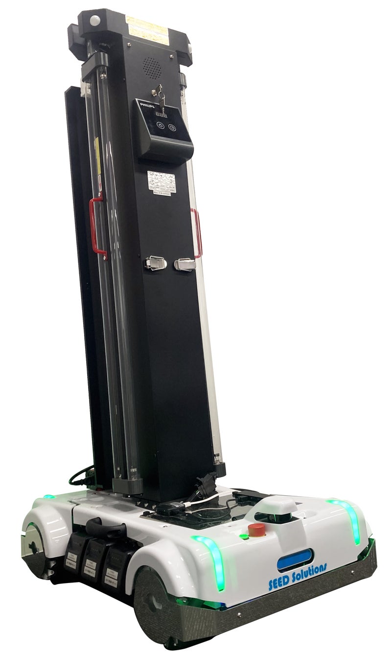 廣瀬無線電機株式会社(本社:東京都千代田区外神田、代表取締役社長:廣瀬美智俊、以下当社)は、シグニファイジャパン合同会社(旧:フィリップス ライティングジャパン合同会社、本社:東京都品川区、職務執行者 社長:園田悟、以下シグニファイ社)が製造・販売する、紫外線の一種であるUV-C(紫外線C波)照射機能を持つ「フィリップスUV-C除菌トロリー」とTHK株式会社(本社:東京都港区芝浦、代表取締役社長:寺町彰博、以下THK社)が製造・販売する全方位移動台車である「SEED-Mover」を組合せ、自律走行型除菌ロボット「Mover UV-C」の開発を致しました。この度、製品仕様が決定致しましたのでお知らせ致します。(2022年3月26日販売開始予定)