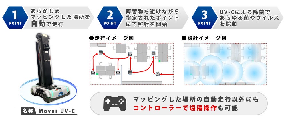 【世界基準の除菌ロボット開発】無人にて大規模スペースを除菌する「Mover UV-C」が誕生!2022年3月26日より販売開始