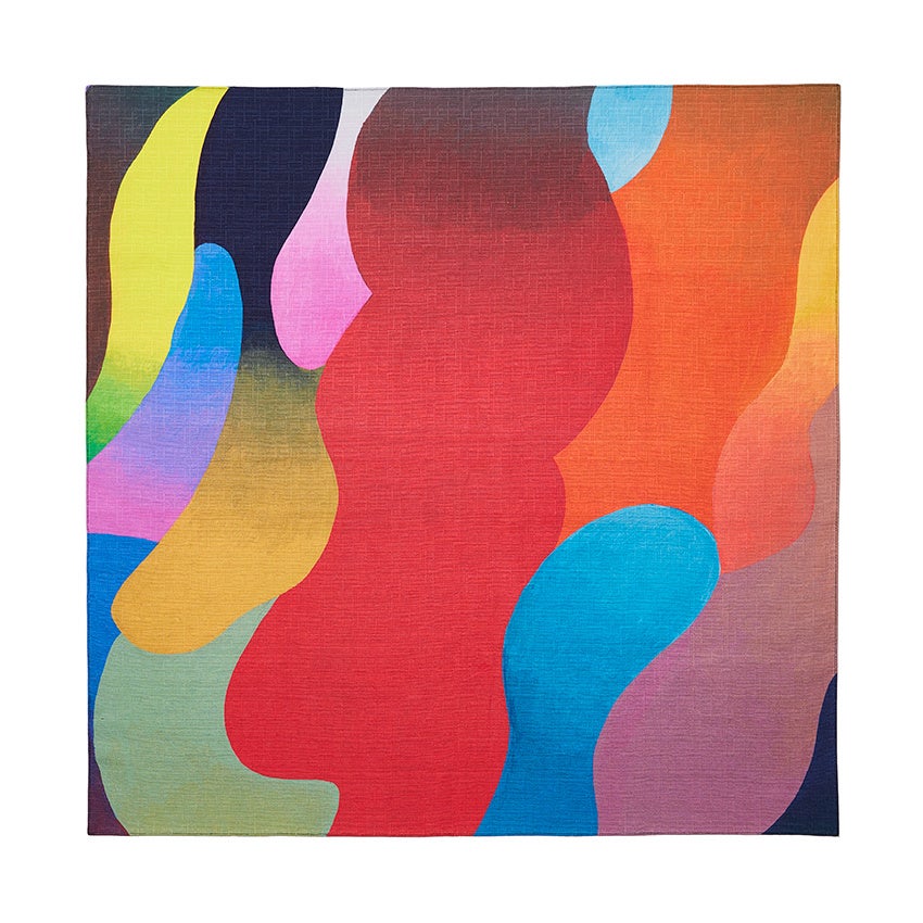 Akari Uragamiのアート作品をプリントした、色鮮やかでモダンな印象の風呂敷。ワインや菓子折りを包んだり、バッグにしたり。アイディア次第で様々に使える風呂敷は、包み方によって違った表情を楽しめるのも魅力です。