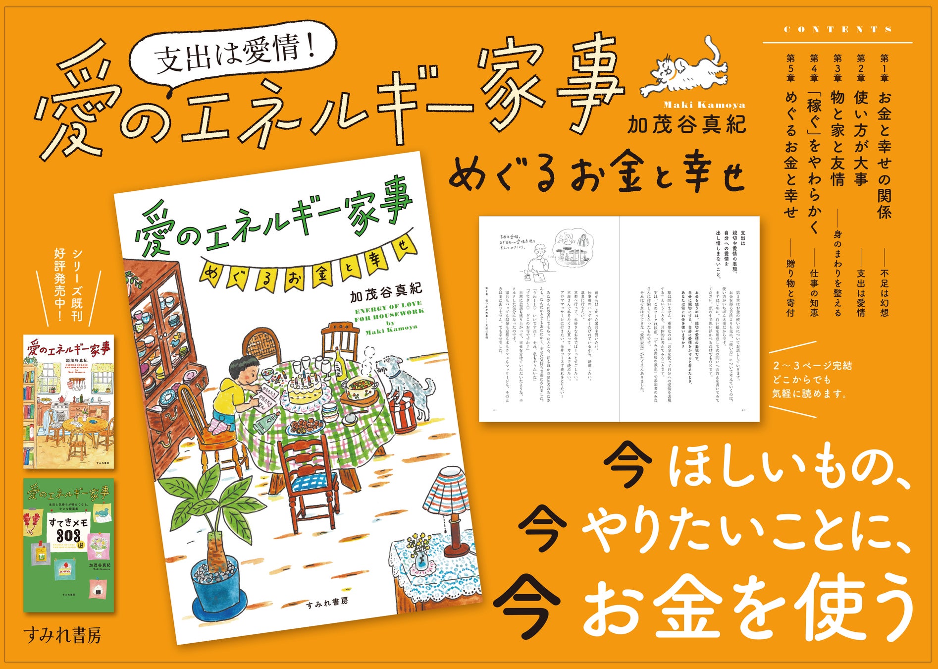 昨年秋に発売された第3弾の『愛のエネルギー家事 めぐるお金と幸せ』は、シリーズのなかで最もはやく増刷が決まり、発売4カ月で6刷の快進撃。「今ほしいもの、今やりたいことに、今お金を使う」というコピーに惹かれて手に取る人が多く、読了後の読者からは「お金の本なのに涙が出た」「お金に対する認識が180度変わった」「再就職への勇気が湧いてきた!」など、熱い感想が届いています。