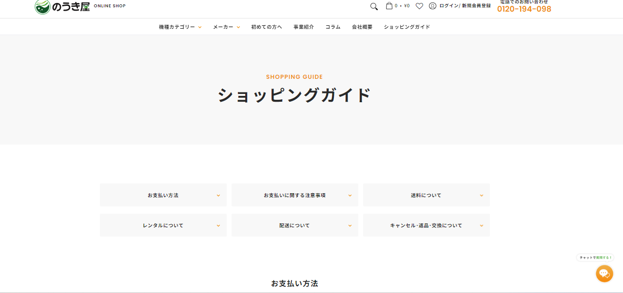 掲載しております商品には「レンタル可否」の表示がされており、商品ページから「購入・レンタル・リース」が簡単に選択できます。農機具は高額な商品で、購入を迷われることもありますが、のうき屋では手軽にレンタルが可能です。
