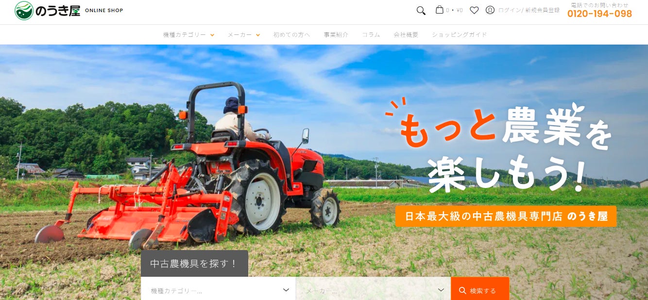日本最大級の農機具販売専門店「のうき屋」、新品・中古販売から買取やリースまで業界では【画期的なオールインワン】のウェブサイトをオープン