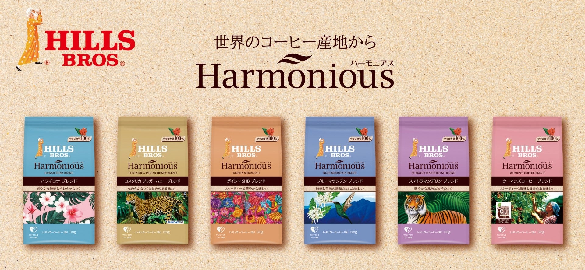 伝統と歴史あるアメリカ発のコーヒーブランド「ヒルスコーヒー(HILLS BROS COFFEE)」を日本で展開する日本ヒルスコーヒー株式会社(本社/神戸市、資本金/4,000万円、以下/日本ヒルスコーヒー)は、日本限定で展開している、上質なアラビカ豆を100%使用した個性豊かで調和のとれたブレンドコーヒーシリーズ「Harmonious(ハーモニアス)」の6製品を「地球にやさしく、おいしいコーヒー」をコンセプトにリニューアルし、9月2日(月)に発売します。
