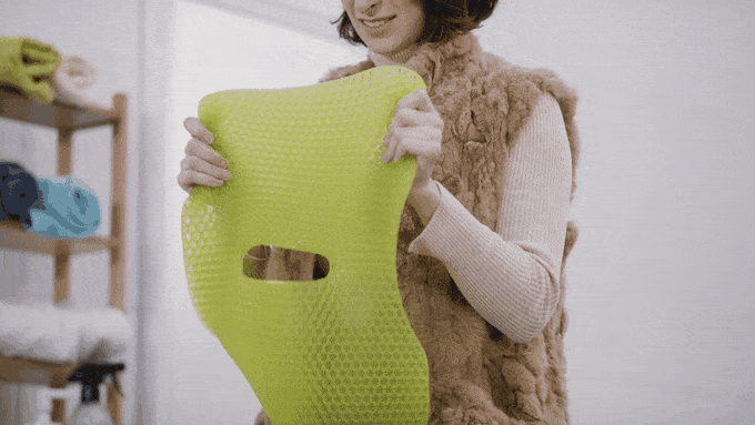 日常で使用するものなのでとことん清潔・抗菌にこだわりました。通常のハニカム構造のクッションシートより特殊素材の精密加工、さらに耐久性まで考慮した2重ハニカム構造。丸洗いもでき清潔です。