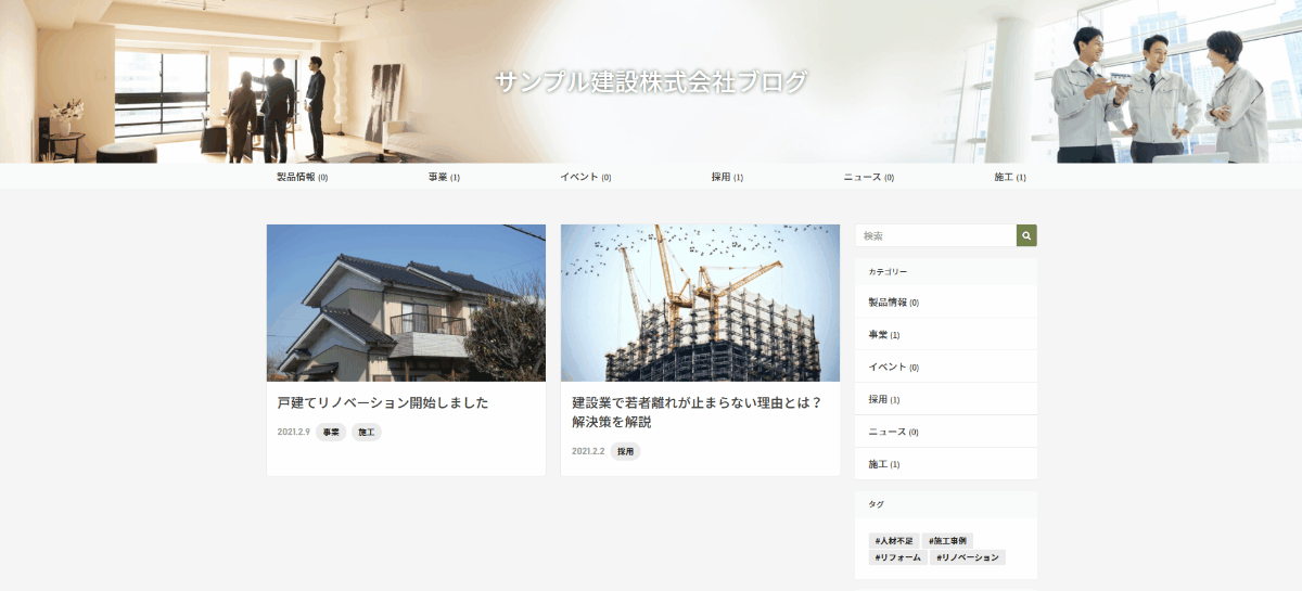 - 施工事例の掲載もできる販促に強い「企業ホームページ」
