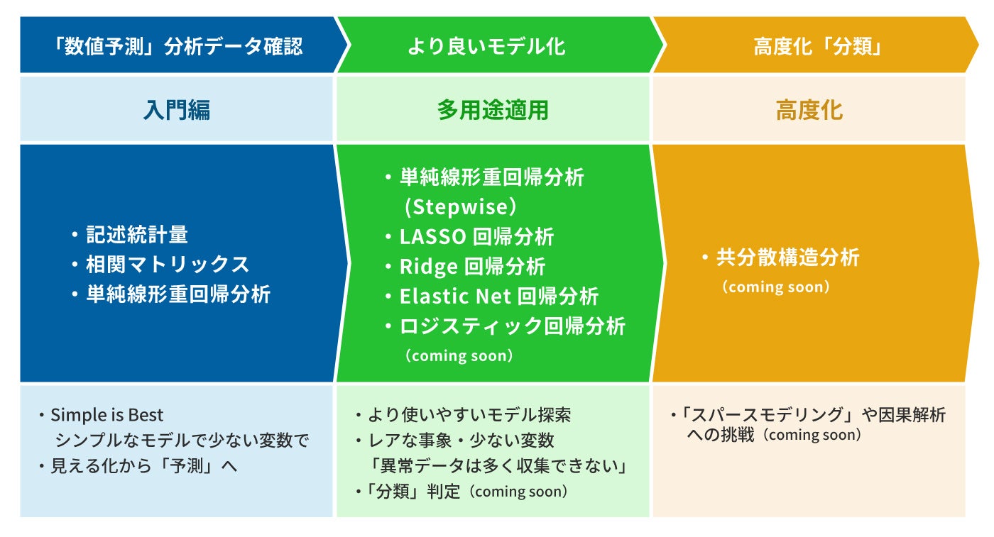 高度な予測を進める際に必ずデータを整備して予測しやすいフォーマットにした上で解析システムにかける必要がありますが、Mµgenでは見える化を通じてすぐに解析を進めることができることが特徴です。