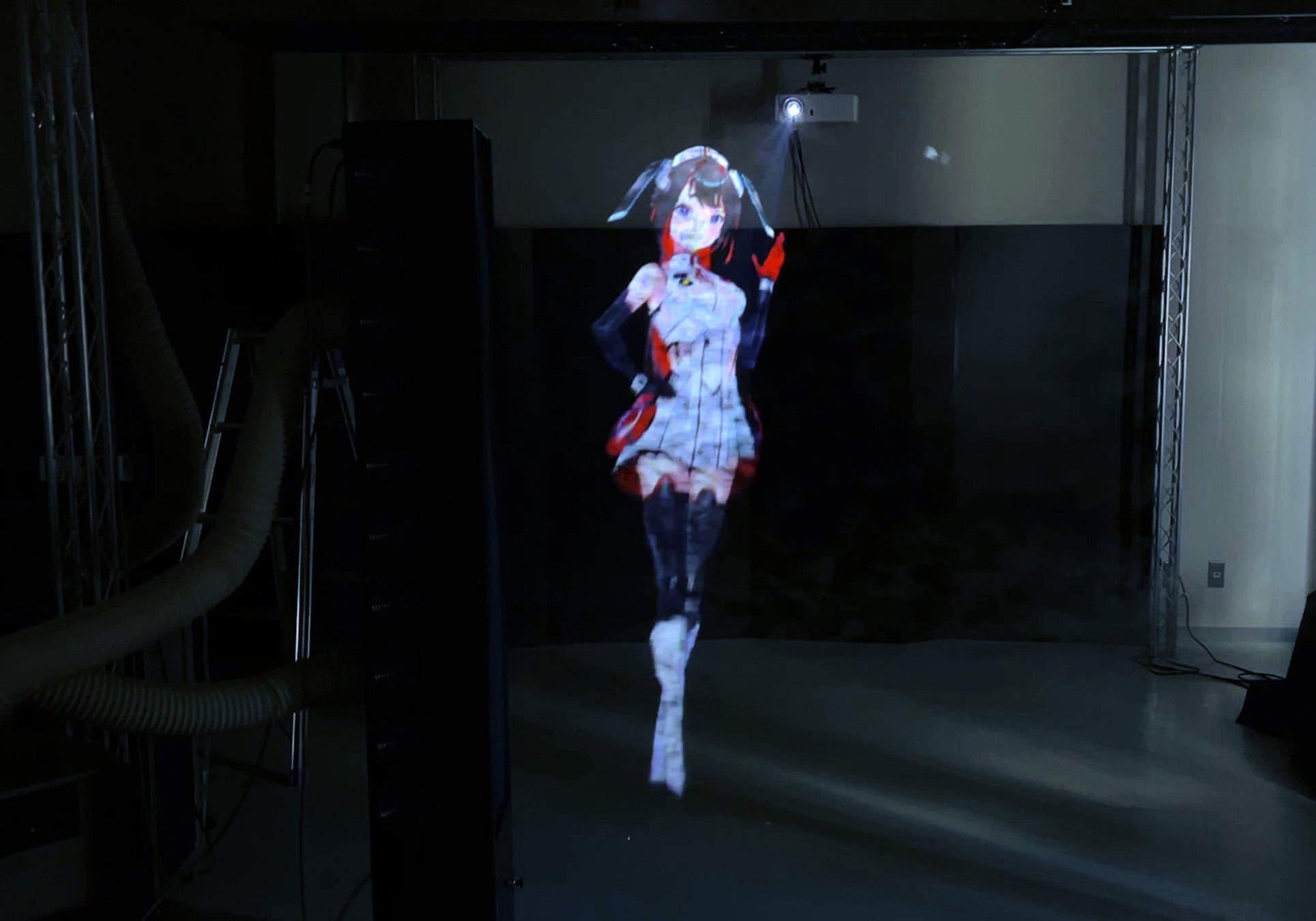 ミストなので触れたり、通過できるので通路や入口に設置してVTuberとの一体感や繋がりを感じるリアルコミュニケーションを実現します。