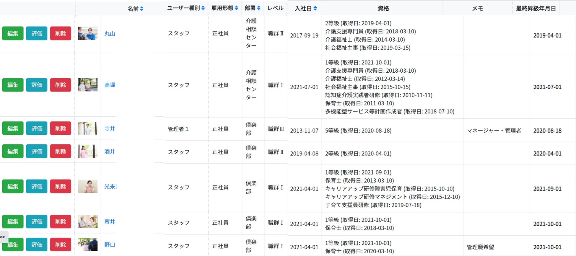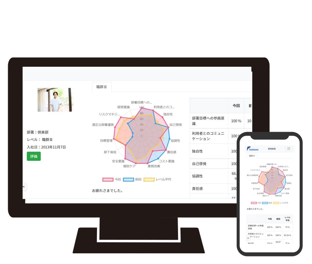 福祉業界に特化した人事評価・キャリアパス・動画教育のクラウド管理システムです。