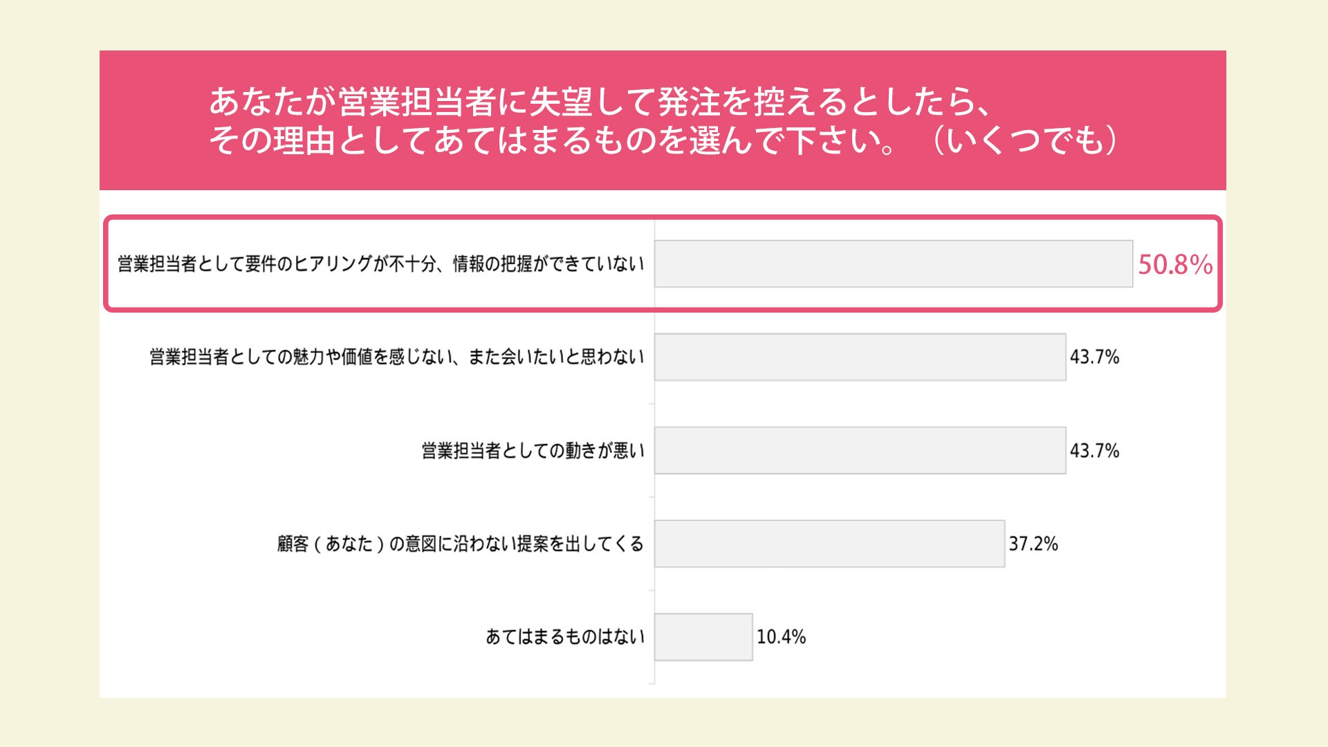 - 営業失注理由で多いのは「質問力の不足」