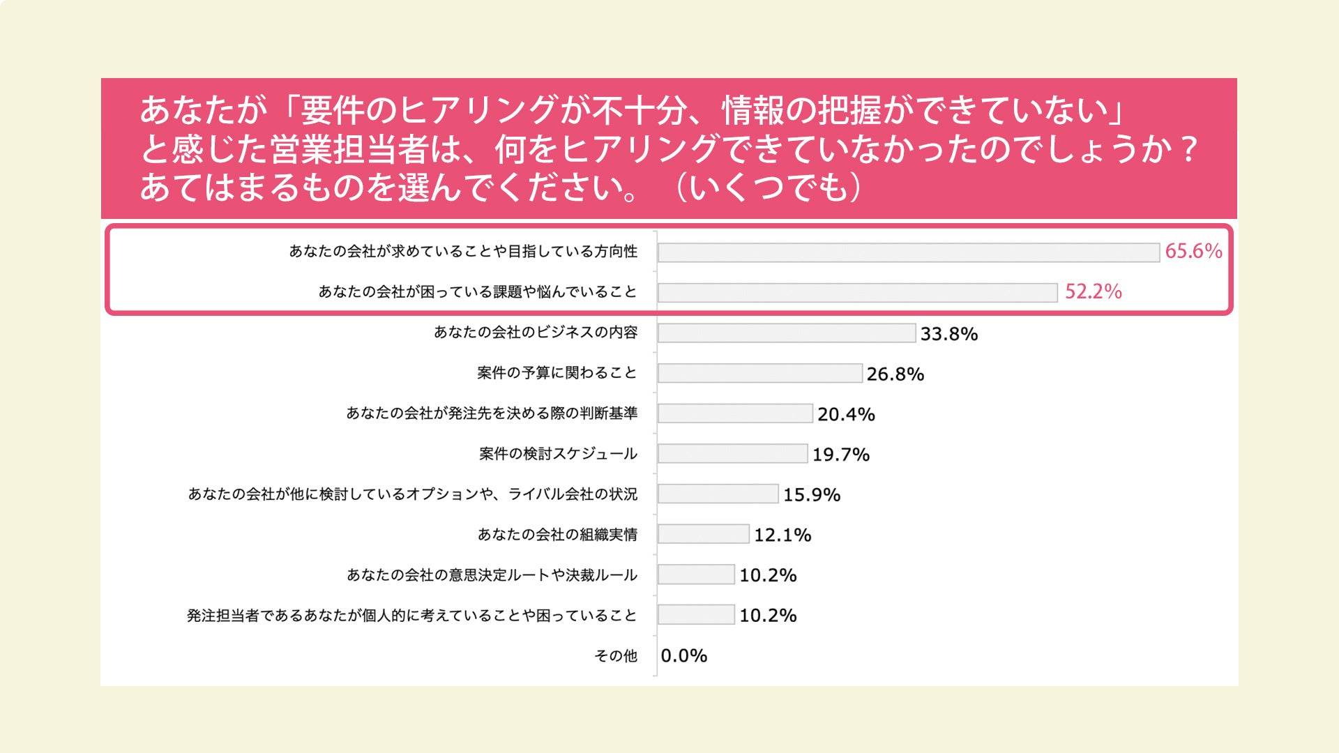 「お客様に対して、予算や意思決定ルートの情報をなかなか聞き出せない」