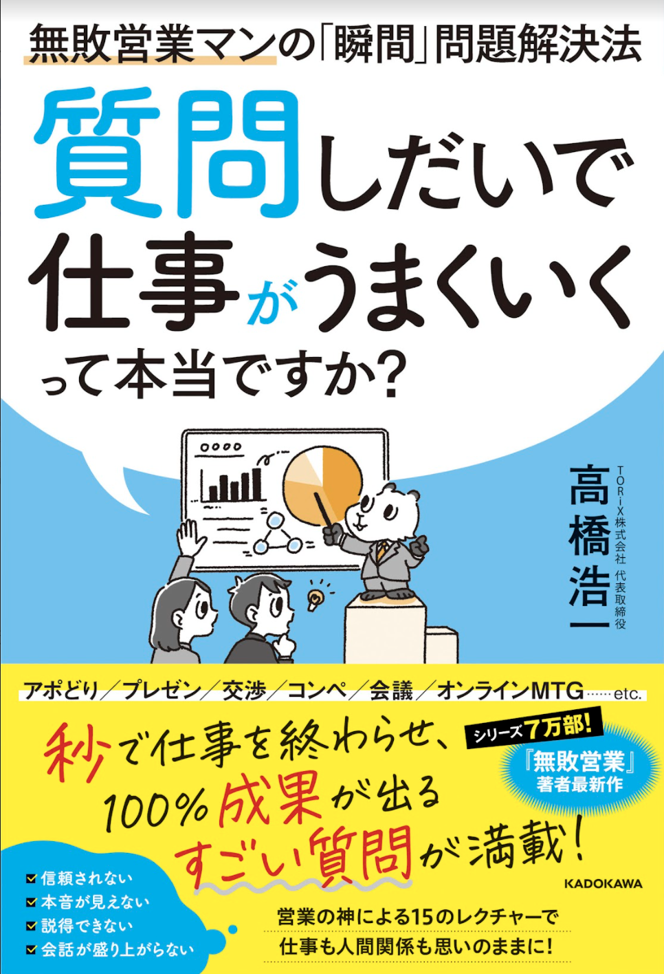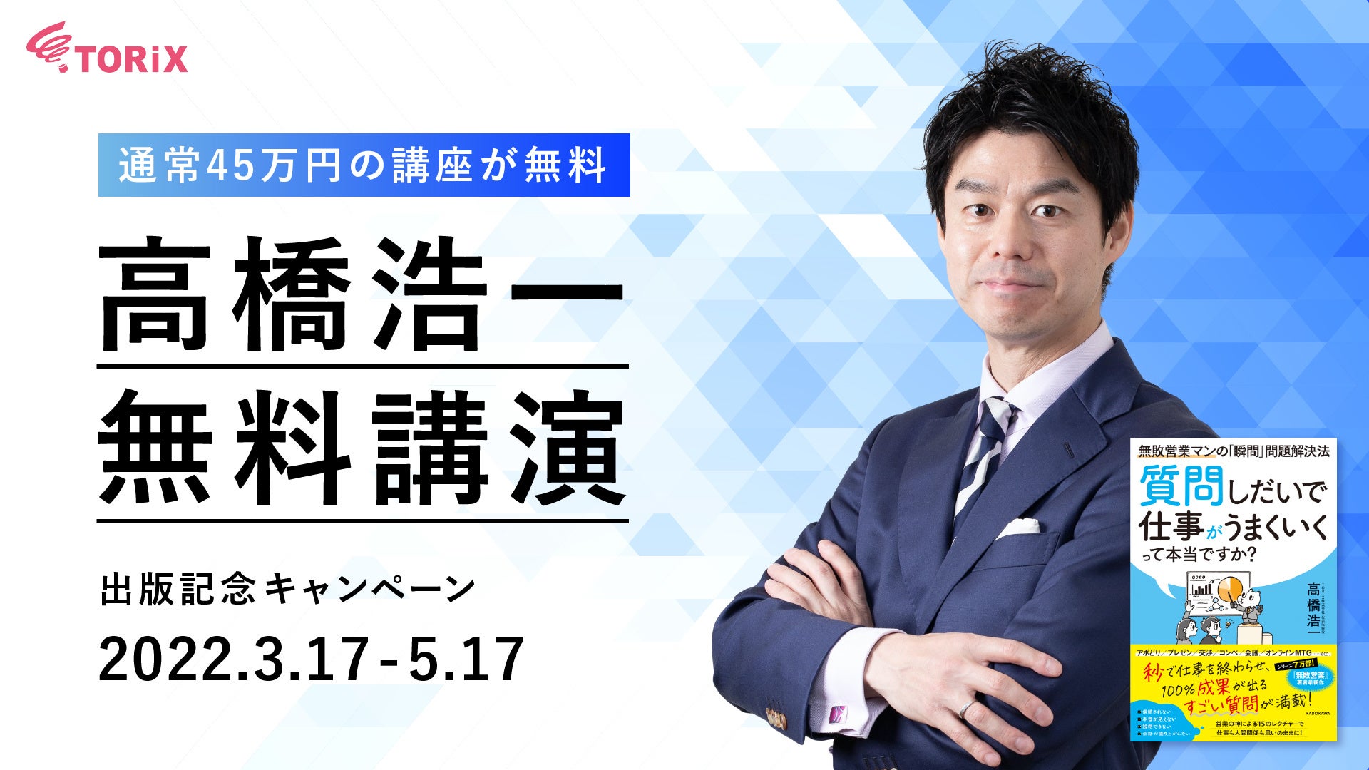 TORiX株式会社(本社:東京都千代田区、代表取締役社長:高橋浩一)は、2022年3月17日(木)に『質問しだいで仕事がうまくいくって本当ですか? 無敗営業マンの「瞬間」問題解決法』(出版:KADOKAWA)を発刊いたします。