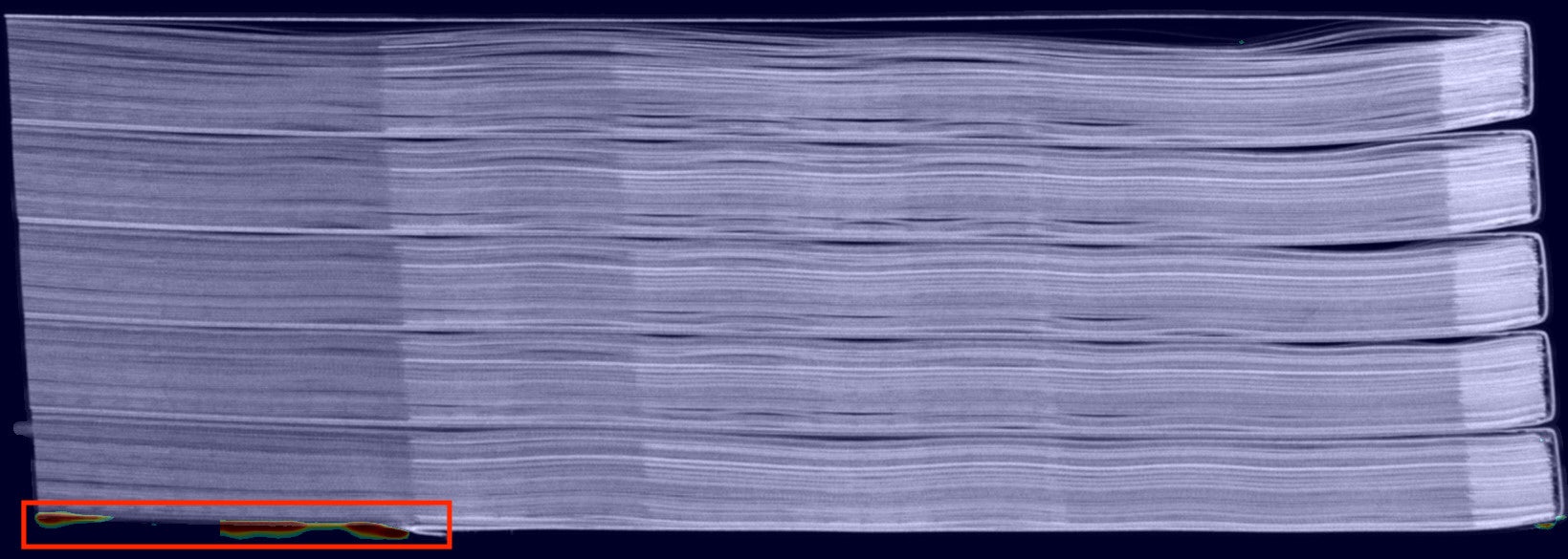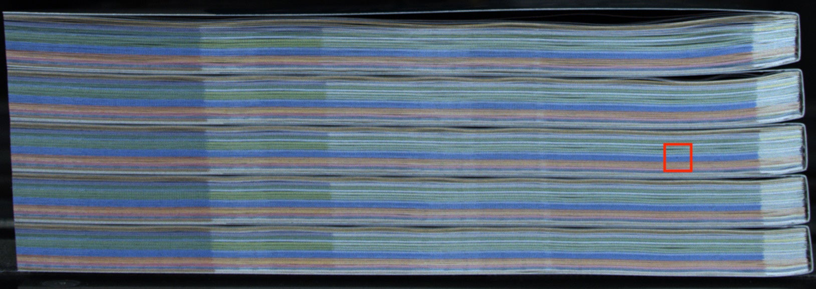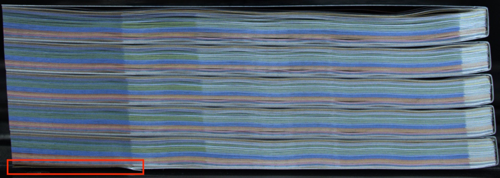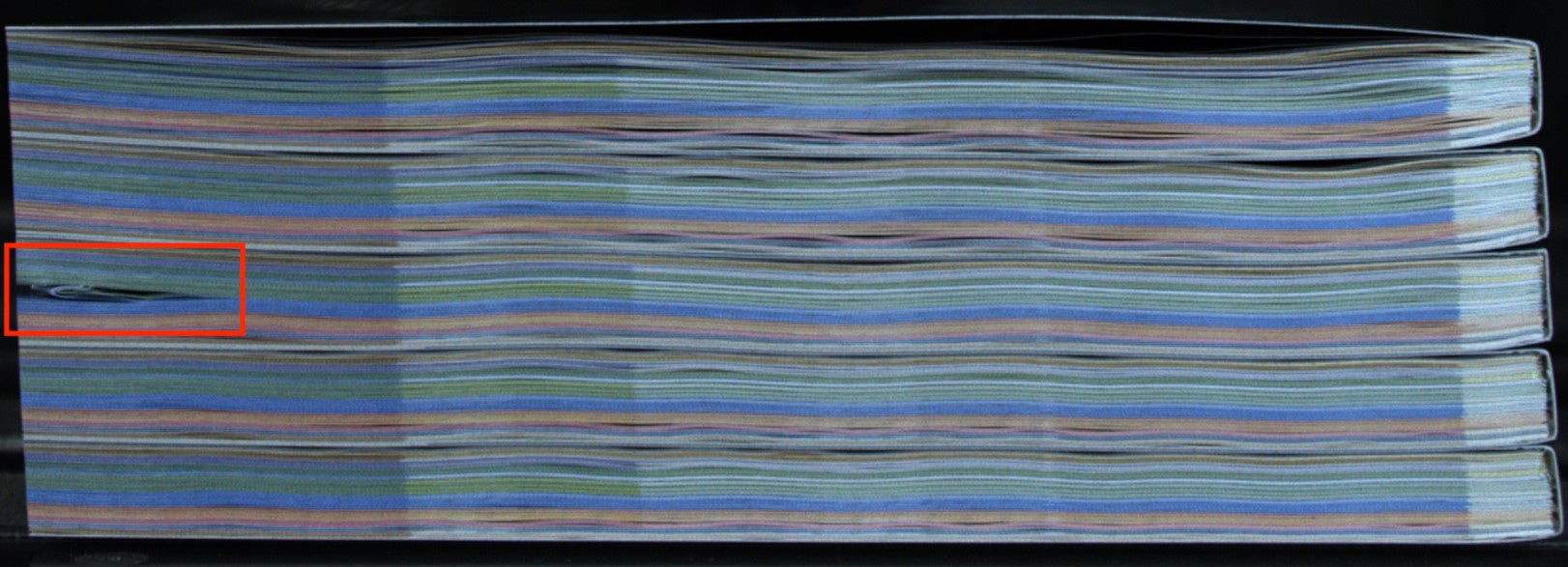 <自己学習型AIによる書籍断裁面不良検出サンプル>