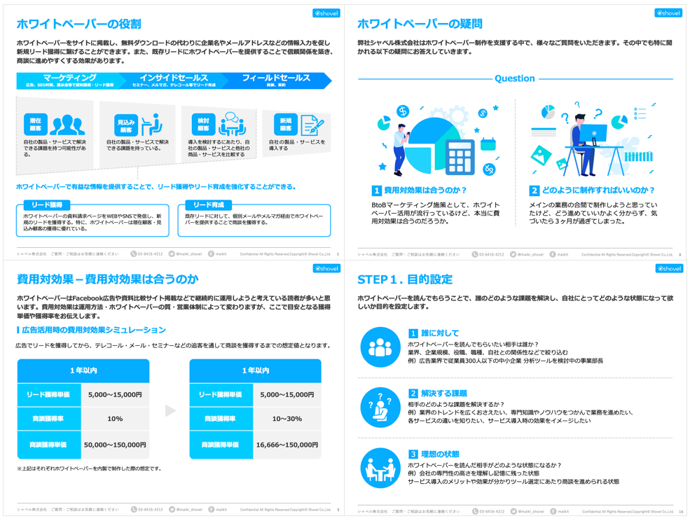 そうしたお悩みを解決するため、ホワイトペーパーに特化し資料制作を行なってきたシャベル株式会社が、そのノウハウをまとめた「ホワイトペーパー制作 完全ガイダンス」の公開に至りました。