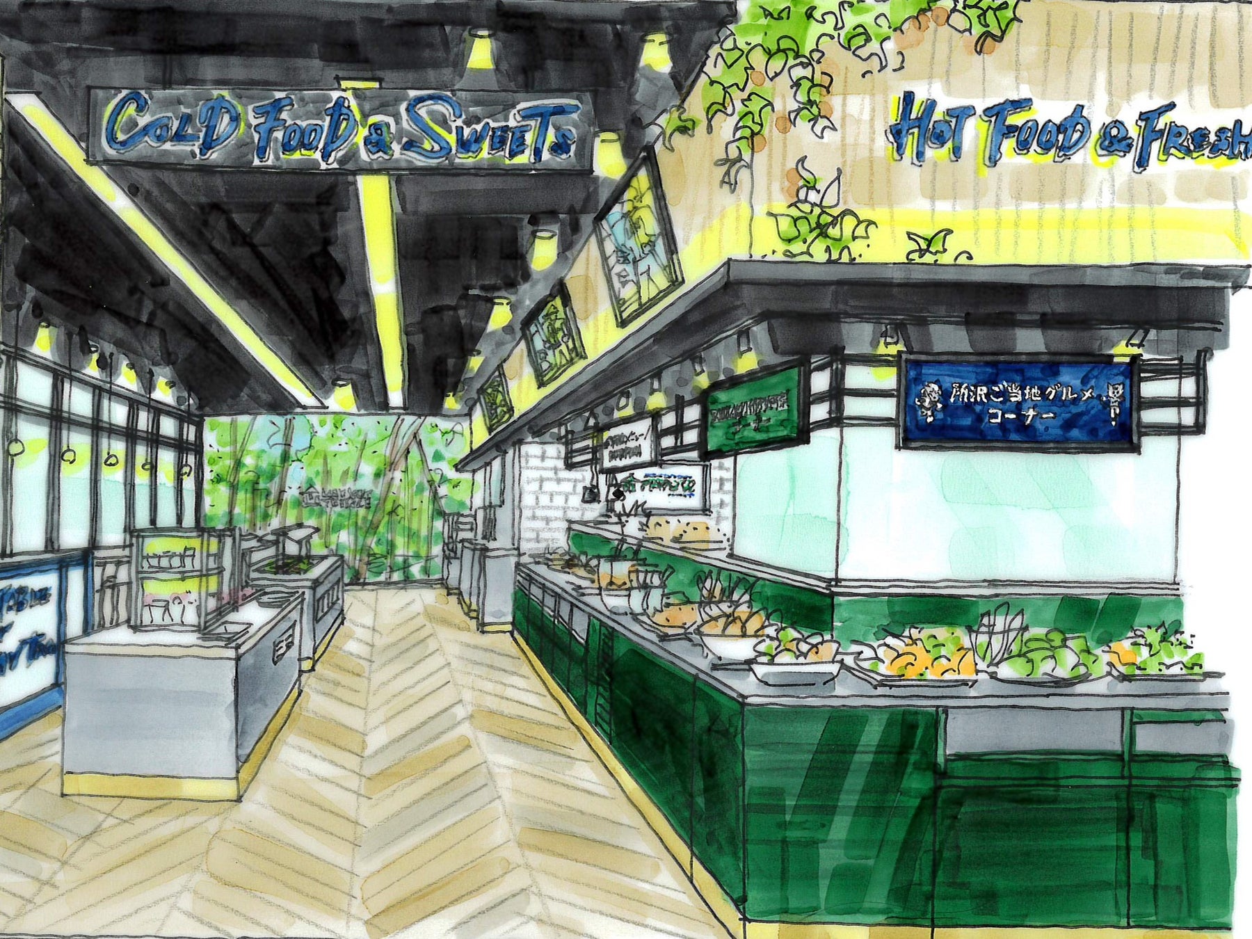 1) 「所沢ご当地グルメコーナー」を設置。「所沢産サトイモの煮っころがし」(※所沢はサトイモ生産量、全国2位)、「ところざわ醤油焼きそば」「ところざわ焼き団子」「ところざわ肉汁うどん」「ところざわ産ホウレン草のグリーンスムージー」などを提供いたします。また、所沢市内の地元農家と直接契約して所沢産野菜を積極的に仕入れて提供するほか、地元クラフトビール「所沢ビール」や地酒・所沢サトイモを使用した焼酎などもオンメニューいたします。