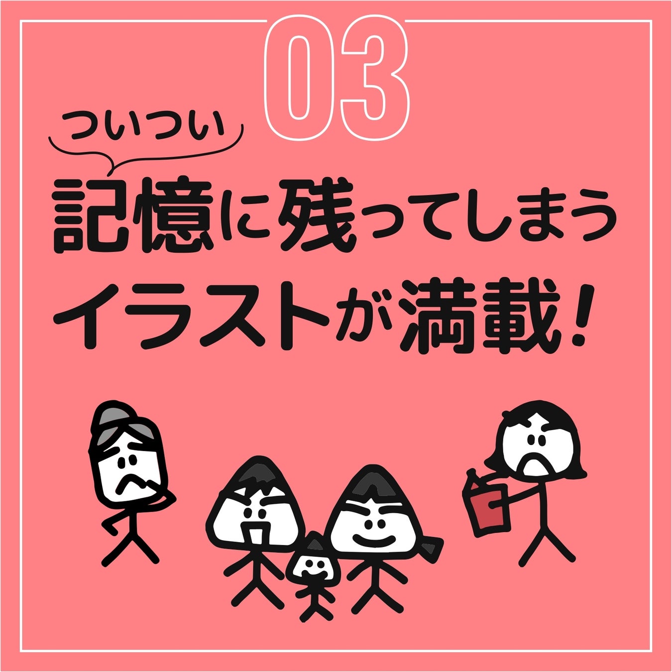 表情豊かなキャラクターや多数のイラストが記憶のトリガーに