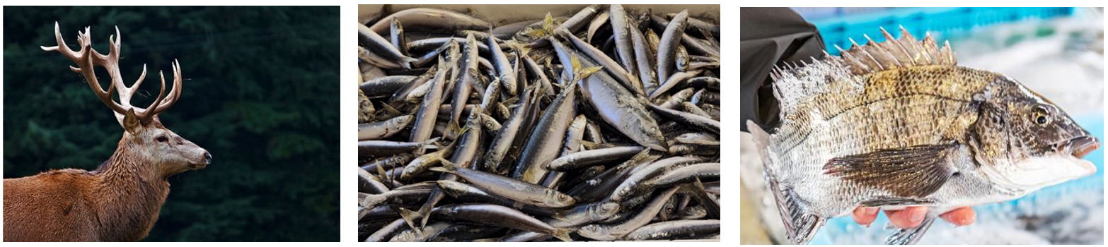 や、近年農作物や森林の樹皮を食い荒らす被害が注目されている鹿の肉、