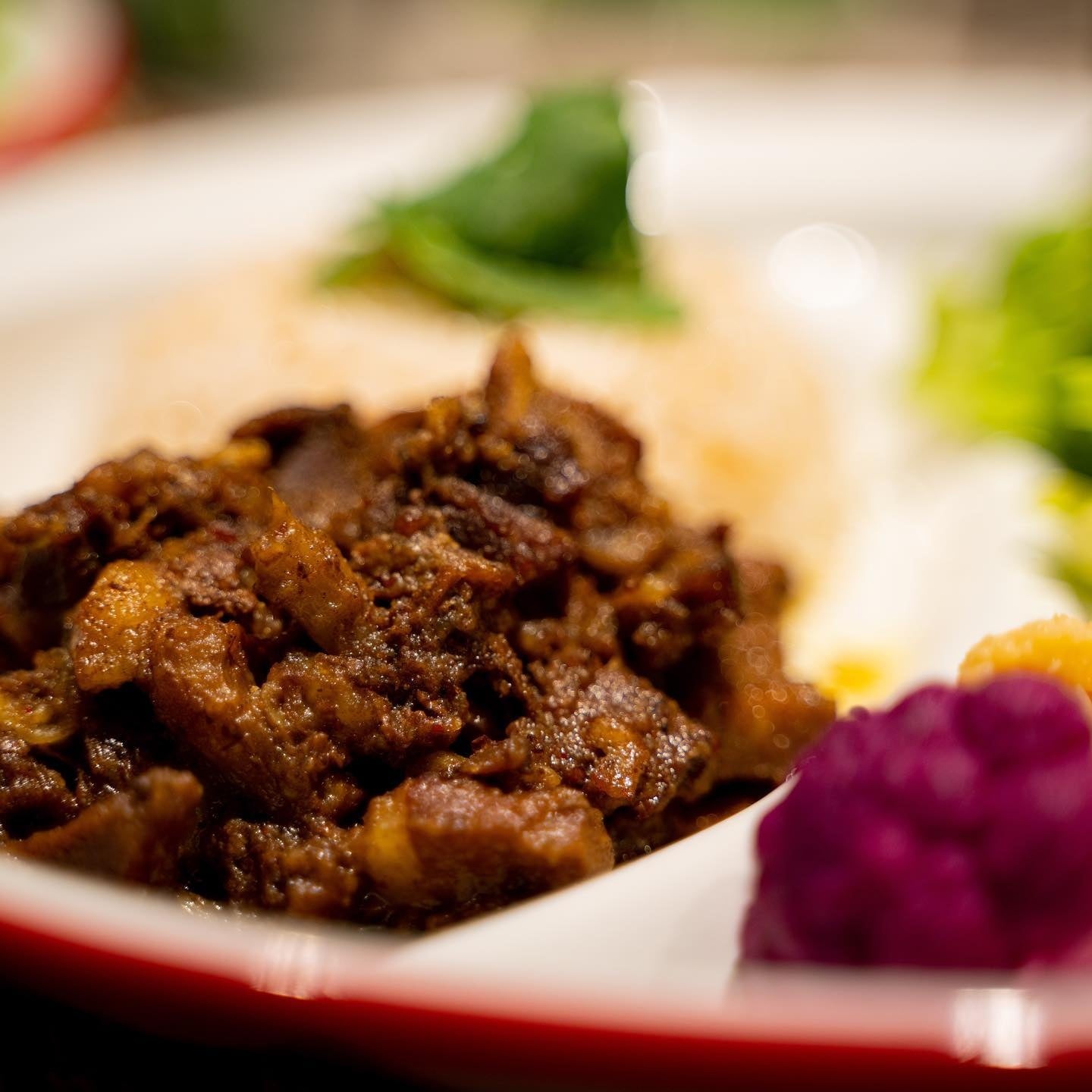 鹿肉のルンダンライス(ルンダンとは、インドネシア料理でお肉の煮込みです。世界一美味しいと称される人気メニューです)
