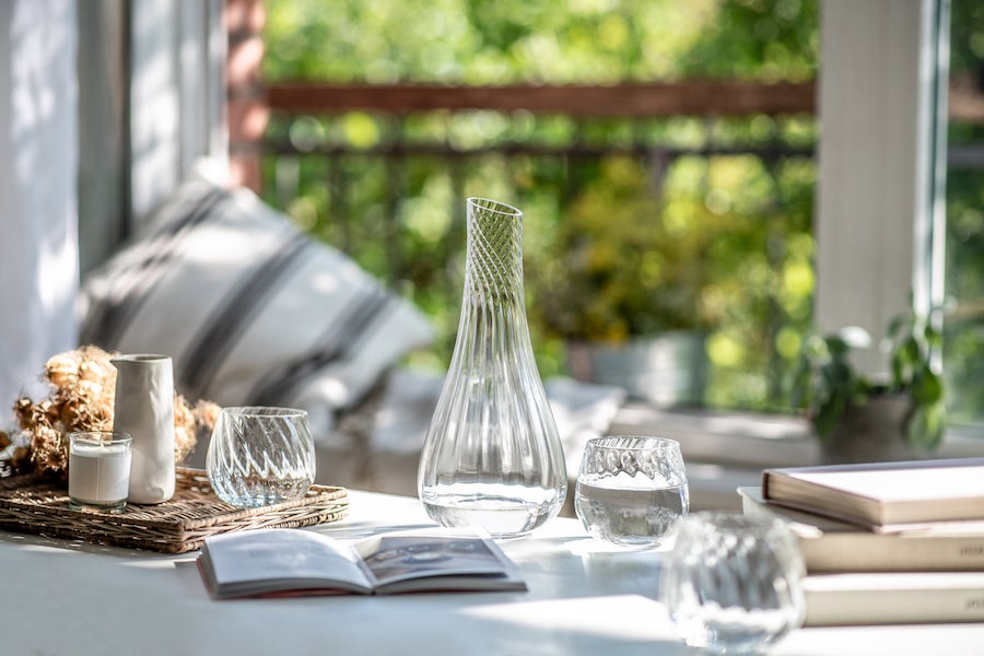 Zwiesel Glasの職人たちによる熟練の技術とドイツ人デザイナーSebastian Herkner(セバスチャン ヘルクナー)のデザインにより誕生した “Manoa”(マノア)は、ハンドメイドのカラフェとタンブラーのシリーズです。