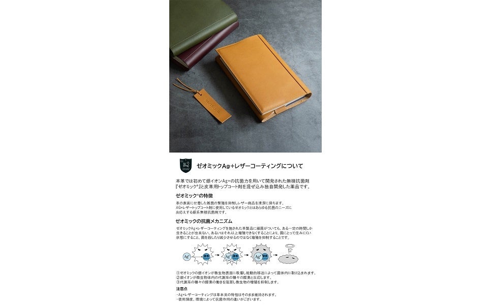 ・ゼオミックAg+レザーコーティング加工を施したレザーを使用していることを証明するタグが付属します。